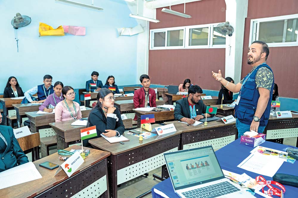 सम्मेलनमै करुणा सापकोटाले दक्षिण अफ्रिकाका बारेमा खुलस्त रूपमा आफ्नो धारणा राख्नुभएको थियो । गोविन्दविक्रम थापाले टर्कीको राष्ट्र प्रमुख बनेर संयुक्त राष्ट्रसङ्घमा आफ्नो मुलुकको धारणा राख्नुभयो । सम्मेलनका सहभागीले पनि यसरी नै आफूलाई जिम्मेवारी दिइएको मुलुक र समस्याका बारेमा अध्ययन गरेर सम्मेलनमा आफ्नो धारणा राख्नुभयो । संयुक्त राष्ट्रसङ्घको महासभामा सहभागी भएपछि सदस्य राष्ट्रका प्रमुखले जसरी आफ्ना एजेन्डा राख्छन्, त्यसरी नै मुन सम्मेलनमा सहभागी हुने सबै जसो सदस्यलाई राष्ट्रसङ्घमा सहभागी हुने कुनै न कुनै मुलुकको प्रतिनिधिको पहिचान दिइन्छ र सोही अनुसार एजेन्डा तय गरेर सम्मेलनमा प्रस्तुत गर्न लगाइन्छ ।