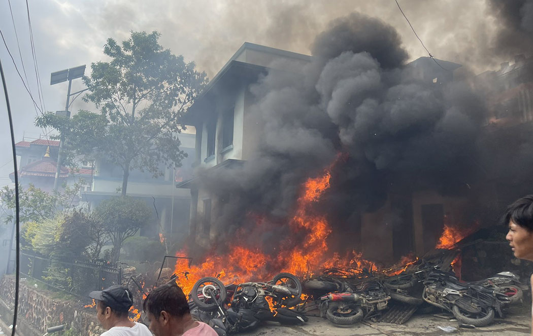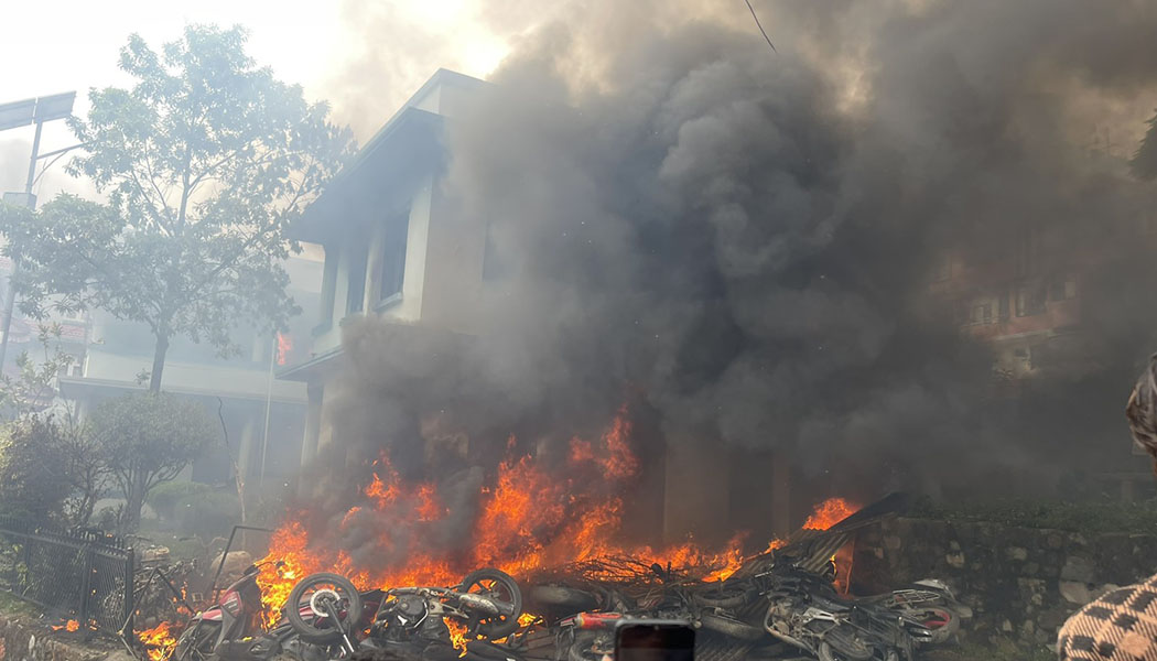 ललितपुर, भदौ २४ गते । प्रदर्शनकारीले प्रहरी प्रभाग लुभुमा आगजनी गरेका छन् । प्रदर्शनकारी कार्यालयमा प्रवेश गरेपछि प्रहरी भने ज्यान बचाउन सुरक्षित स्थानतर्फ गएका छन् ।