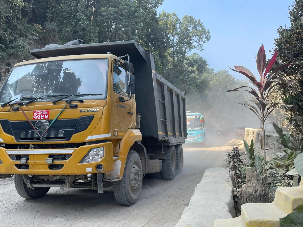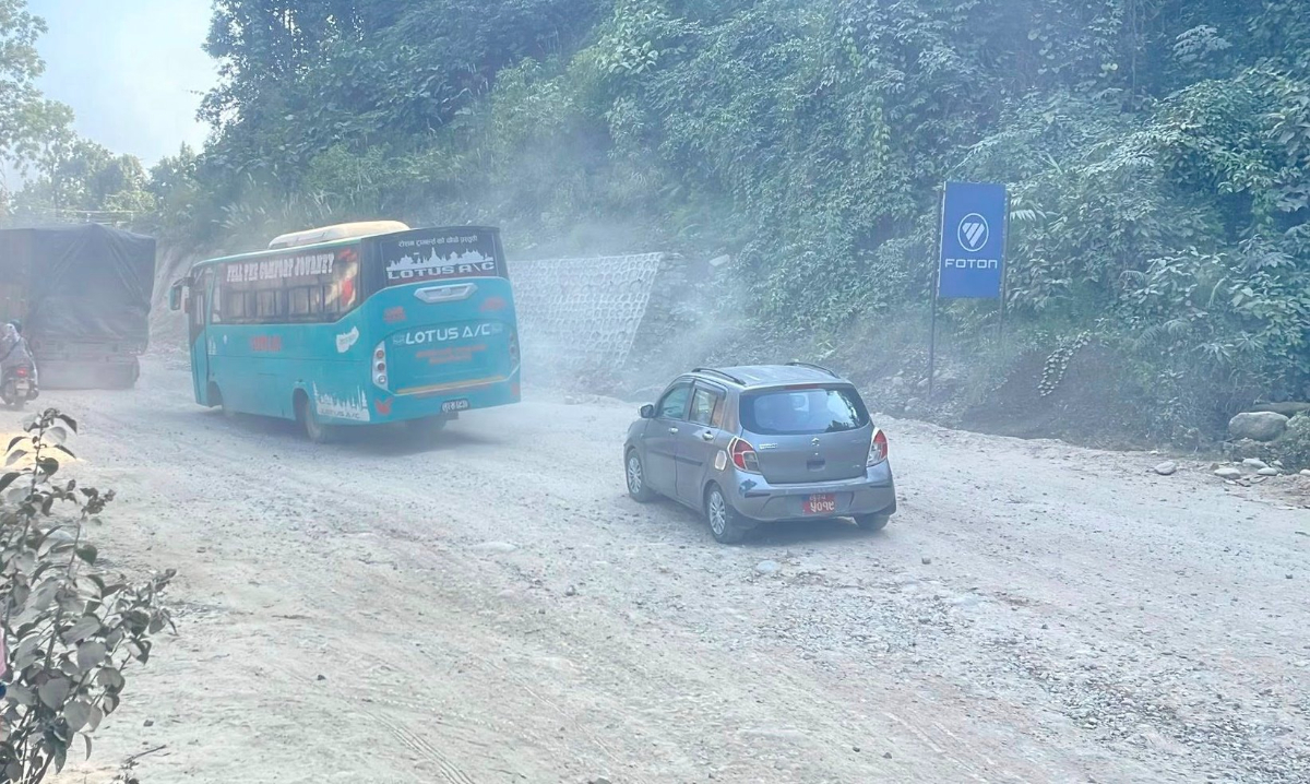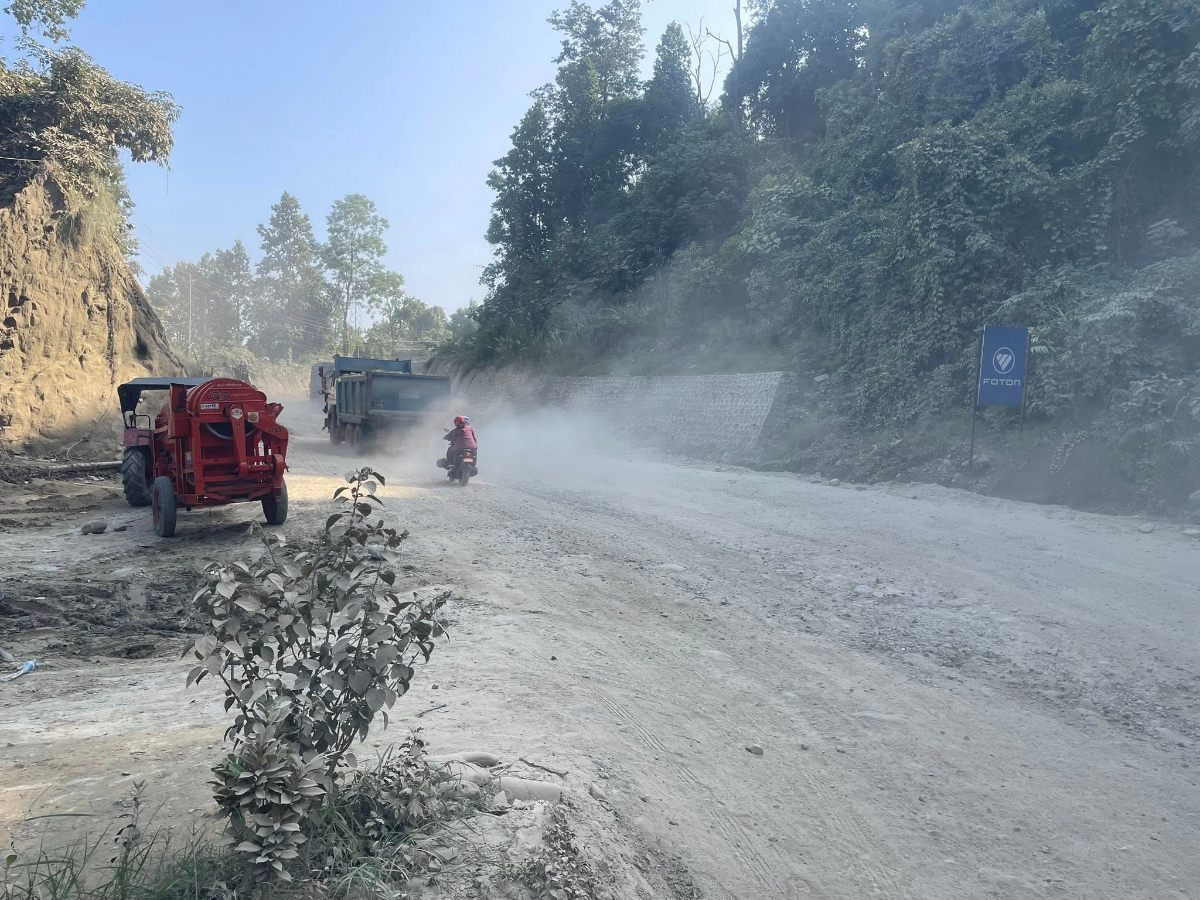 तर ठेकेदार कम्पनीले भने पानी हालेपनि चर्को घाममा उतिबेलै सुक्ने भएकाले समस्या हुने गरेको बताएको छ । ‘‘बाक्लो पानी हाल्दा फेरी गाडी चिप्लिने समस्या हुन्छ, हल्का हाल्दा सुकिहाल्छ,’’ चाईना स्टेट कन्स्ट्रक्सन कर्पोरेसन प्रालिका प्रोजेक्ट म्यानेजर राकेश झाले भन्नुभयो।