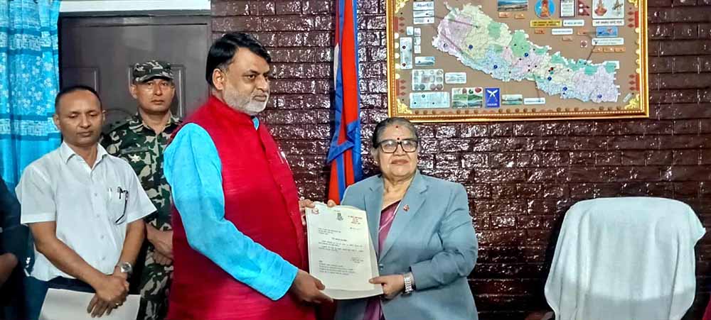 मधेश प्रदेश सरकाकार नवनियुक्त मुख्यमन्त्री जितेन्द्र सोनार र प्रदेश प्रमुख सुमित्रा सुवेदी । तस्बिरः लक्ष्मी चौधरी