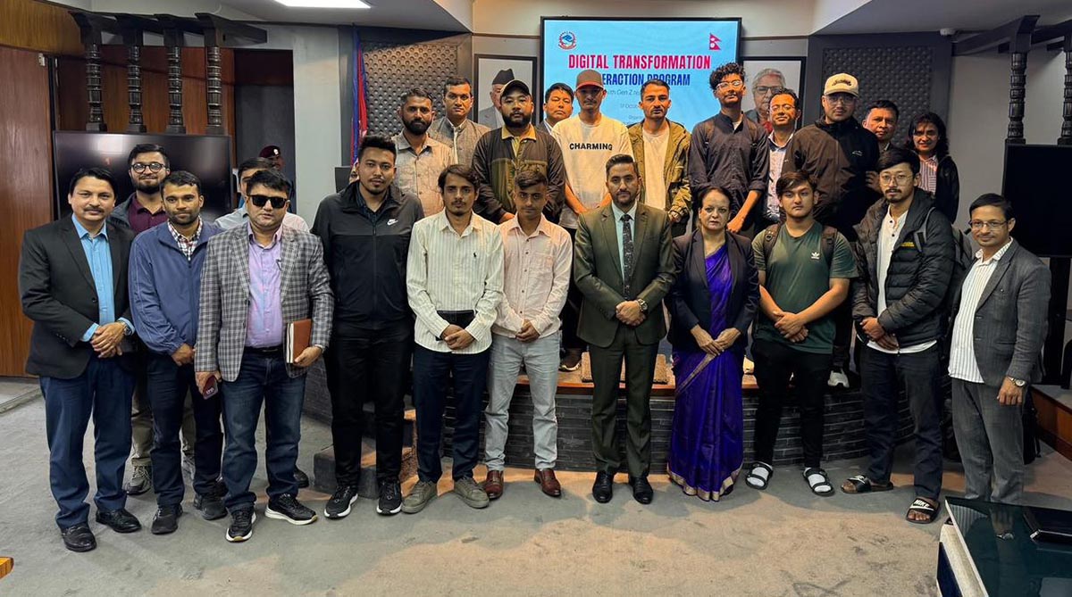 सञ्चार मन्त्रालयले शुक्रबार आयोजना गरेको डिजिटल रुपान्तरण सम्बन्धी अन्तरक्रियामामा जेनजीका सूचना प्रविधि विज्ञको सूचना प्रविधिको क्षेत्रमा युवापुस्तालाई समेटेर मन्त्रालयले आगामी कार्ययोजना बनाउनुपर्नेमा जोड दिए।