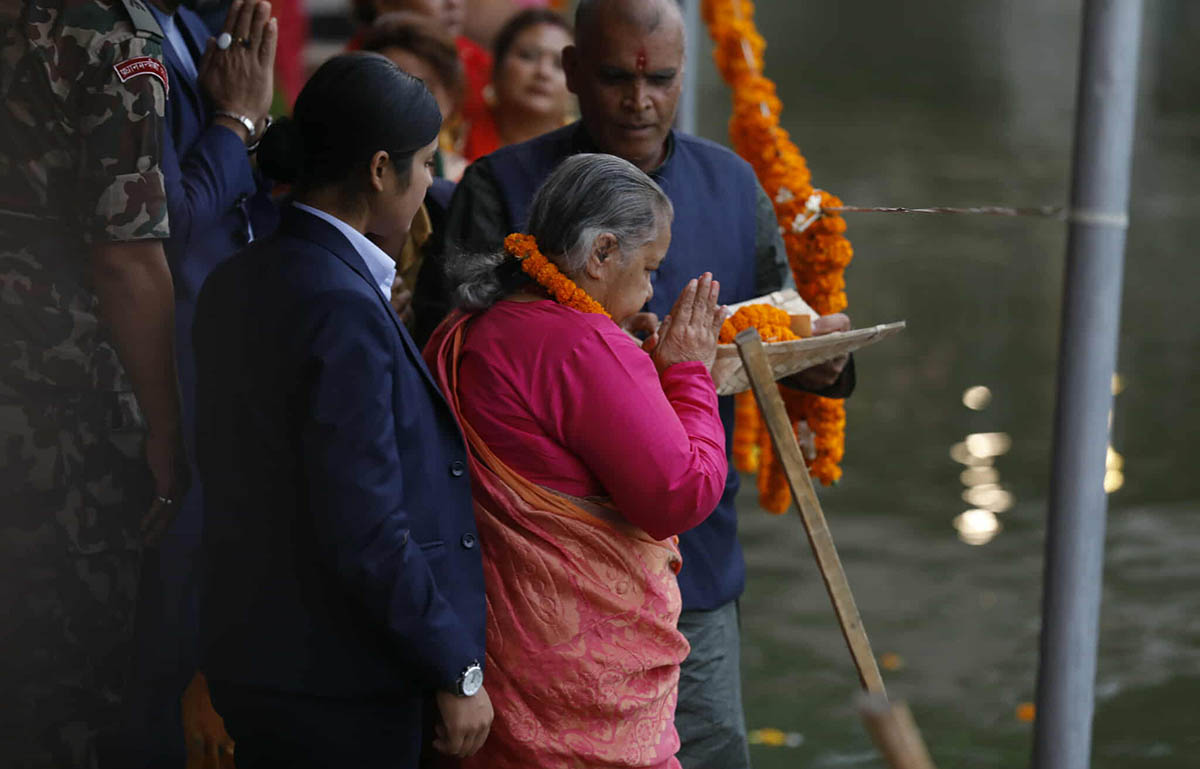राष्ट्रपति रामचन्द्र पौडेलले भने पशुपति क्षेत्रस्थित गुह्येश्वरी मन्दिर अघि बागमती किनार गौरीघाटमा तयार गरिएको छठ पूजास्थलमा पुगेर छठी माताको पूजा अर्चना गर्नुभएको छ।