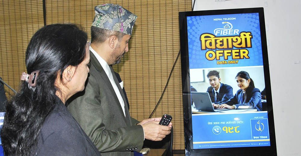 नेपाल टेलिकमले विद्यार्थीवर्गलाई लक्षित गर्दै आजदेखि फाइबर विद्यार्थी अफर प्रारम्भ गरेको छ। टेलिकमले २०५४ साल वा सोपछि जन्ममिति भएका विद्यार्थीका लागि किफायती मूल्यमा उच्च गुणस्तरीय इन्टरनेट प्रदान गर्न एनटी फाइबर विद्यार्थी अफर सञ्चालनमा ल्याएको हो। नेपाल टेलिकम केन्द्रीय कार्यालयमा आयोजित कार्यक्रममा सञ्चारमन्त्री खरेलले उक्त अफरको शुभारम्भ गर्नुभयो।