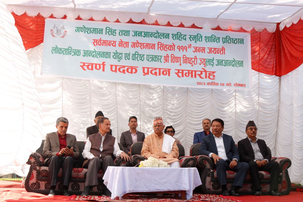 सो अवसरमा वक्ताहरूले गणेशमान सिंहको योगदानलाई स्मरण गर्दै उहाँको आदर्श, निष्ठा र साहस नेपाली राजनीतिका सबै पुस्ताका लागि प्रेरणाको स्रोत रहेको उल्लेख गर्नुभएको थियो । रासस