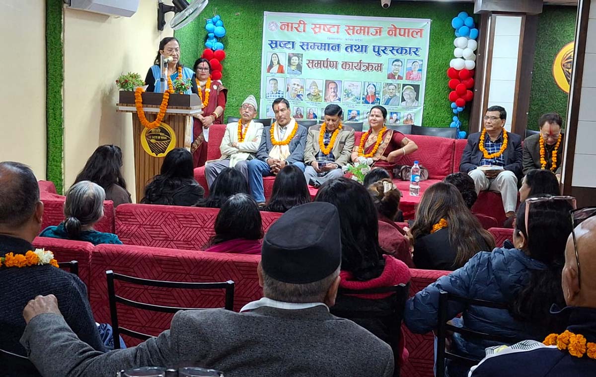 काठमाडौँ, मङ्सिर २ गते । नारी स्रष्टा समाज, नेपालले आइतबार आठौँ वार्षिकोत्सव मनाएको छ । अनामनगरमा मनाएको वार्षिकोत्समा २५ भन्दा बढी स्रष्टालाई पुरस्कार तथा सम्मान प्रदान गरेको हो । देशभरका स्रष्टालाई विभिन्न विधामा पुरस्कार तथा सम्मान प्रदान गरिएको आयोजकले जनाएको छ ।