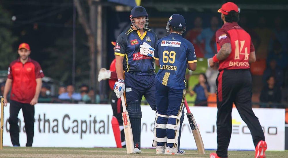 विराटनगरका लागि ओपनर लोकेश बम र मार्टिन गुप्टिलले अर्धसतकीय पारी खेल्नुभयो। लोकेशले ४८ बलमा एक चौका र सात छक्काको सहयोगमा सर्वाधिक ७२ रन बनाउनुभयो।
