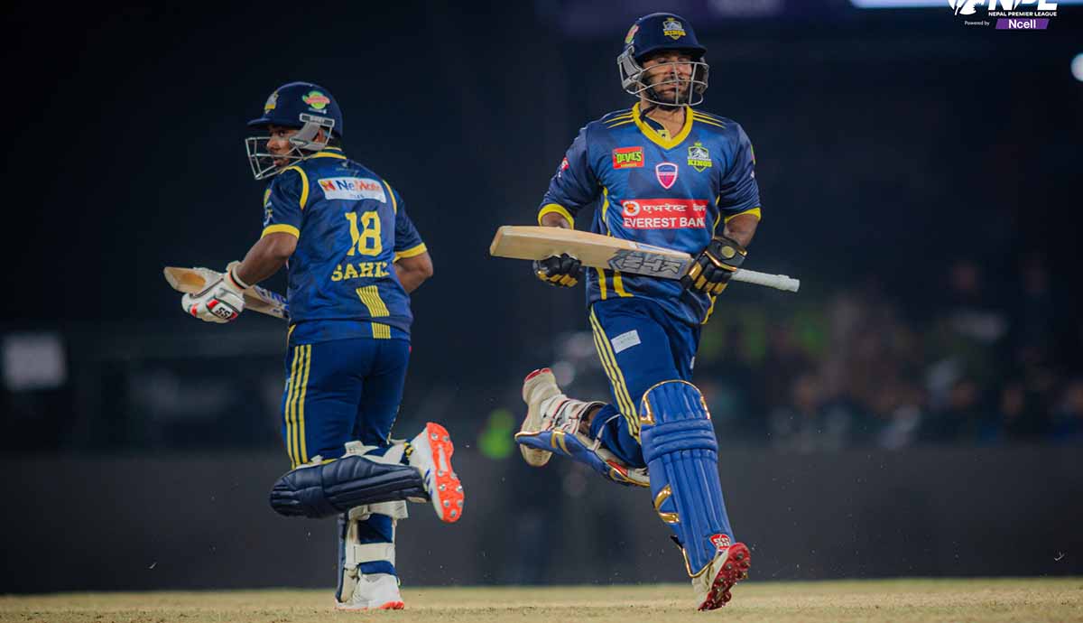 काठमडौँ, मङ्सिर १२ गते। नेपाल प्रिमियर लिग (एनपिएल)मा कर्णाली याक्सविरुद्ध विराटनगर किंग्सले सनसनीपूर्ण जित निकालेको छ। बसिर अहमेदको अर्धशतकमा विराटनगरले कर्णालीविरुद्ध सनसनीपूर्ण जित निकालेको हो। बसिरले ४३ बलको सामना गर्दा तीन चौका र तीन छक्काको मद्दतमा नटआउट ६० रन बनाउनुभएको हो।