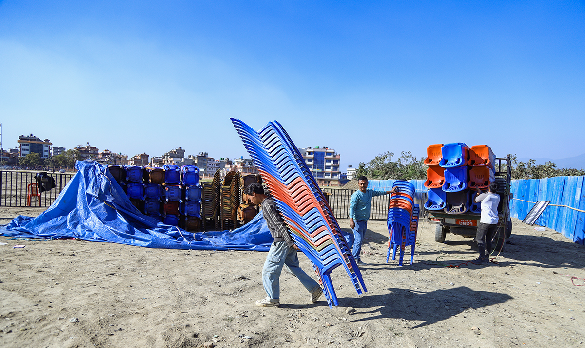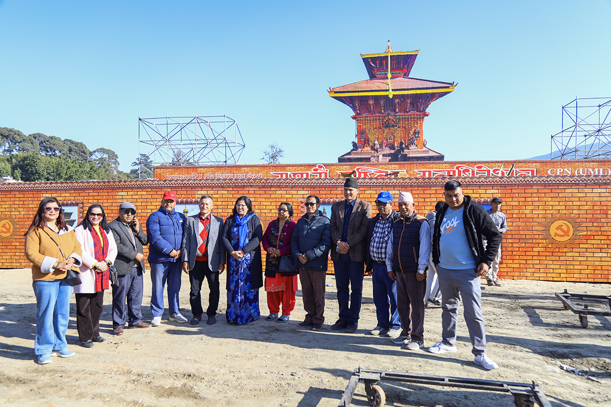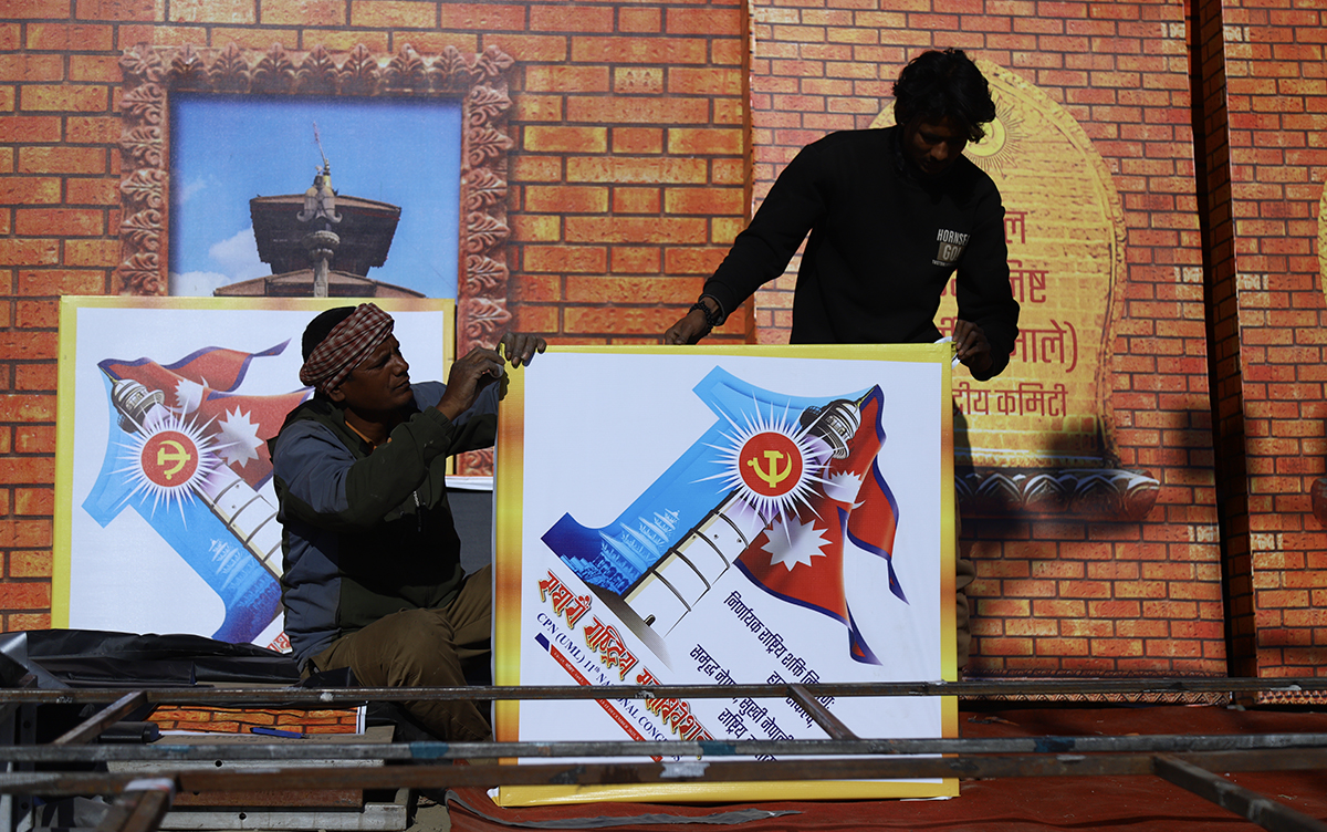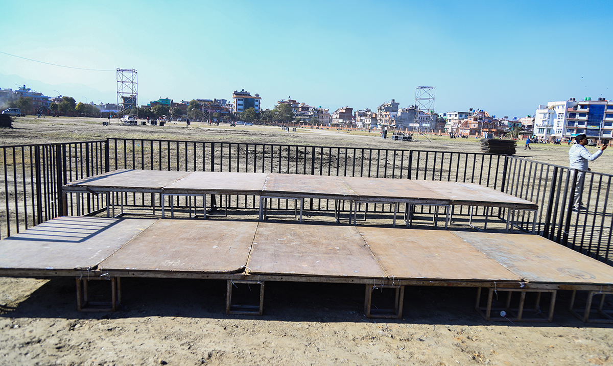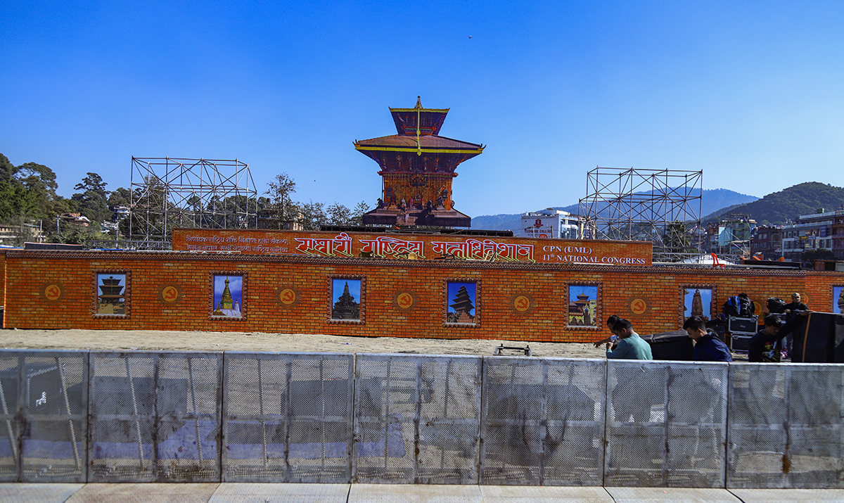भक्तपुर, मङ्सिर २५ गते। नेकपा (एमाले) को ११ औँ महाधिवेशन उद्घाटनस्थल निर्माणको कार्य धमाधम भइरहेको छ।