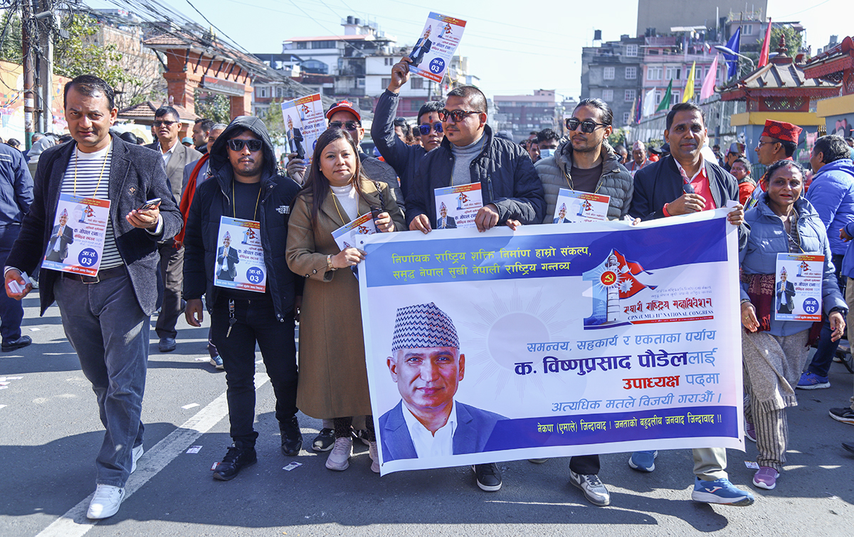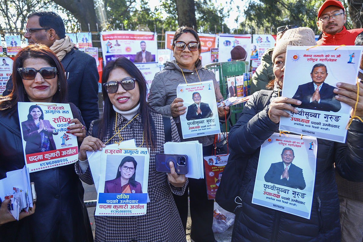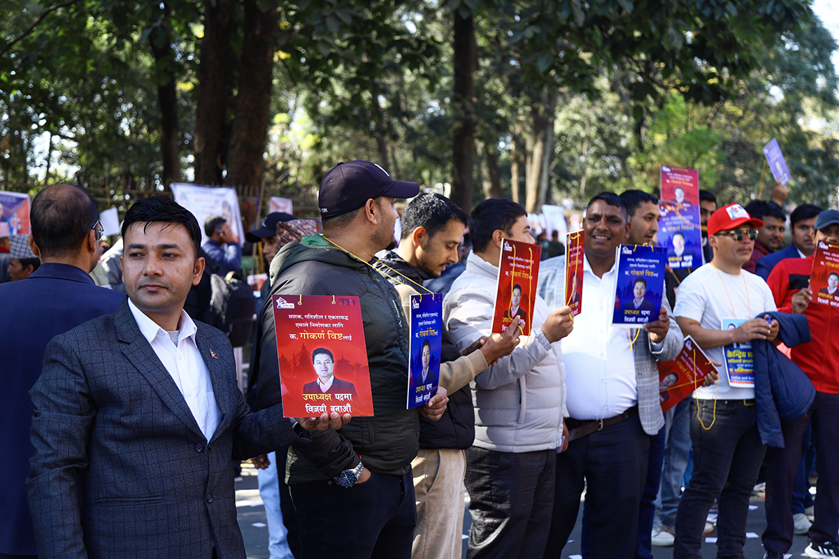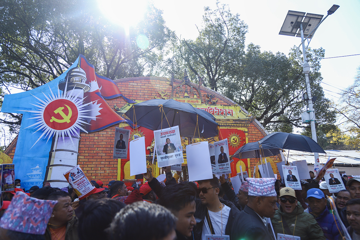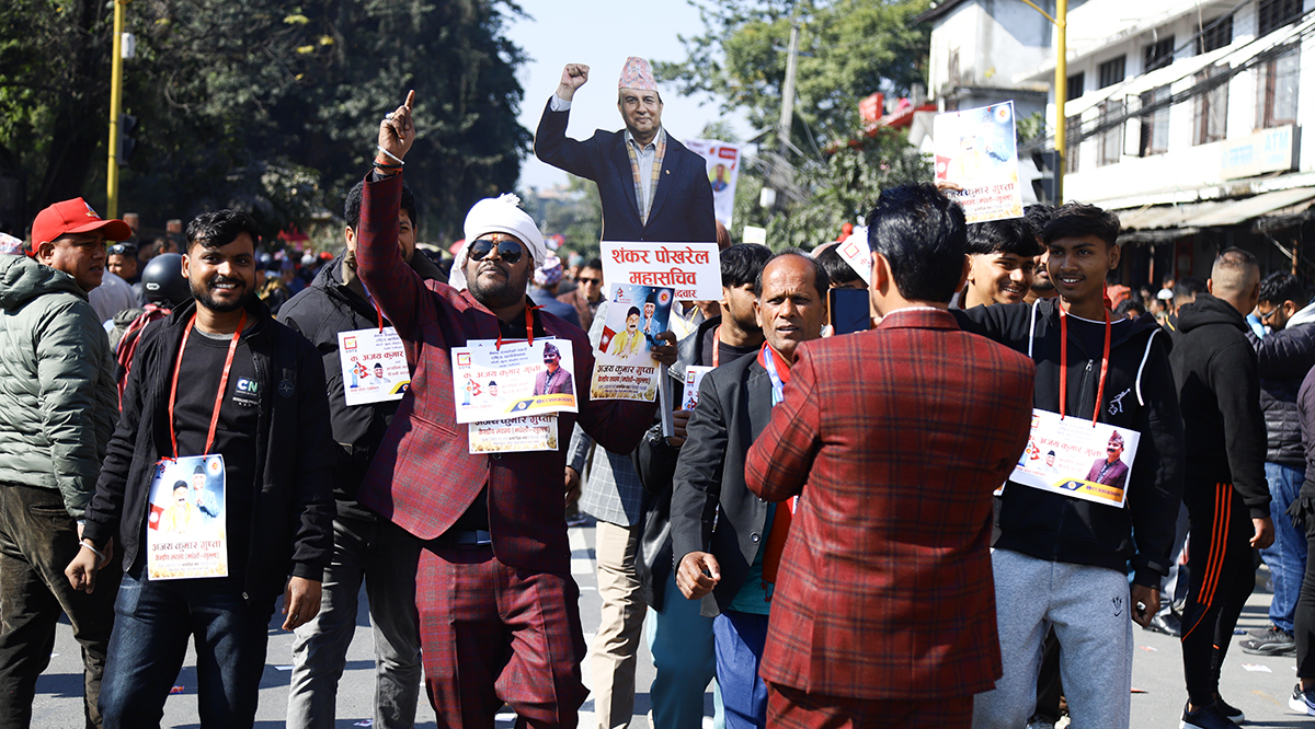 काठमाडौं, पुस १ गते। नेकपा (एमाले) को महाधिवेशन स्थल भृकुटीमण्डपमा चुनावी चहल पहल बढिरहेको छ। आगामी नेतृत्वका लागि केपी शर्मा ओली र ईश्वर पोखरेलबीच प्रतिस्पर्धा हुने भएपछि नेताहरू अहिले मत माग्न केन्द्रित भएका छन्।
