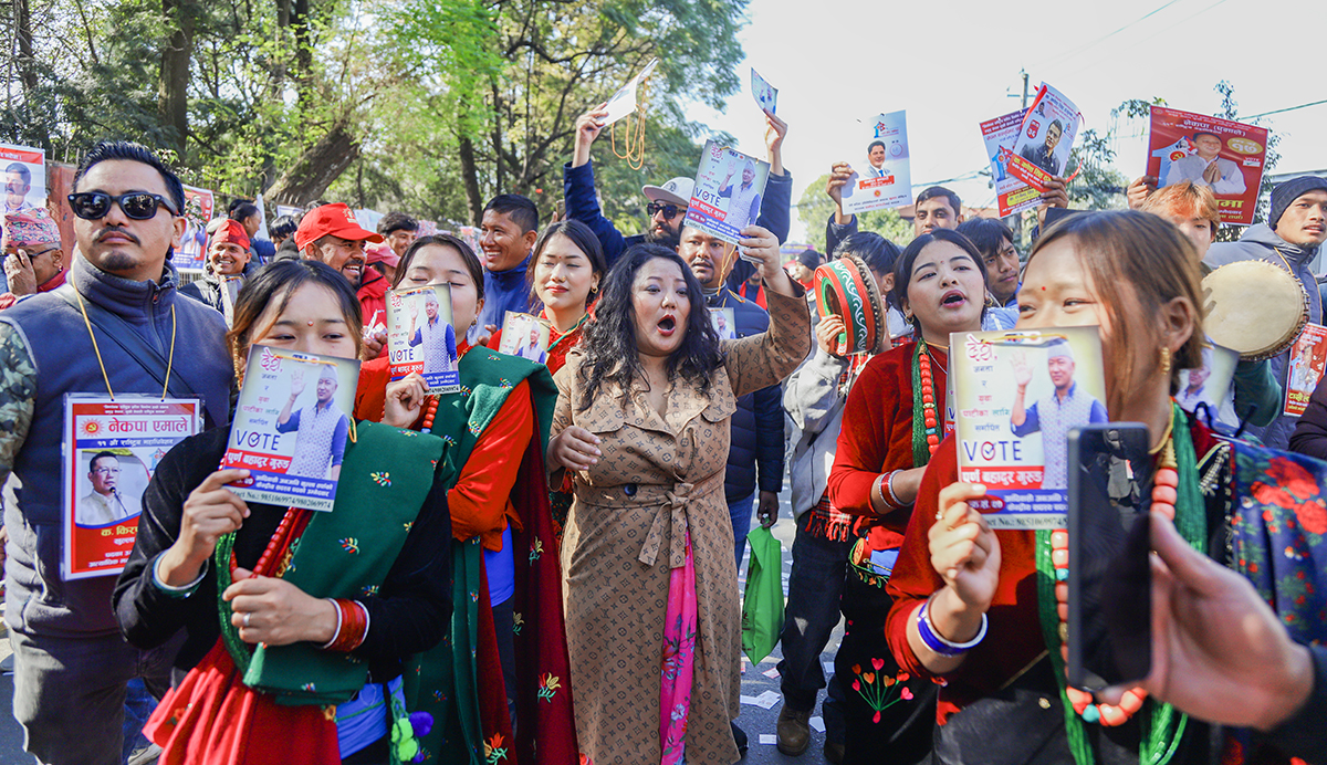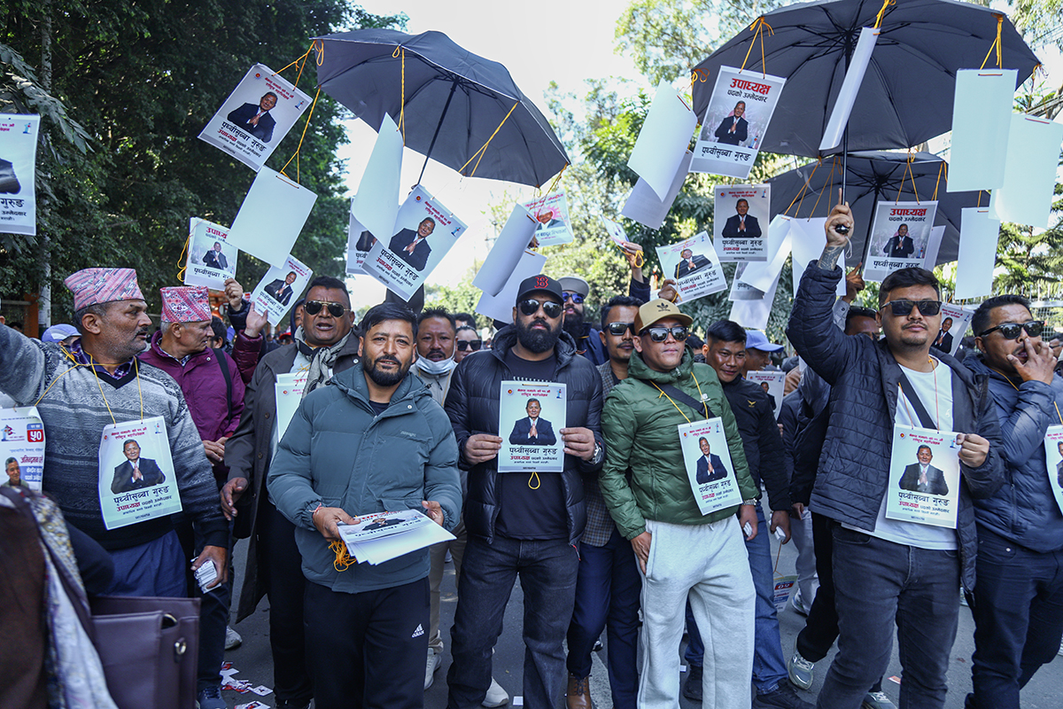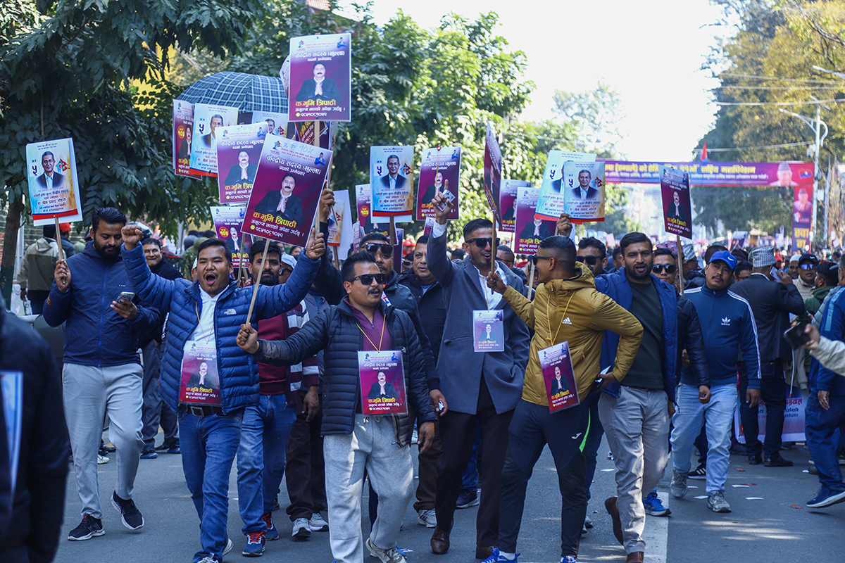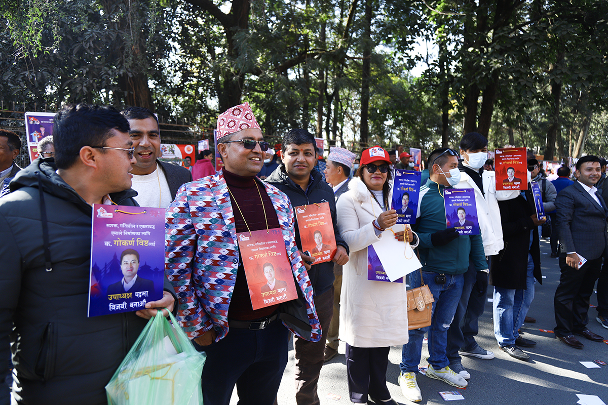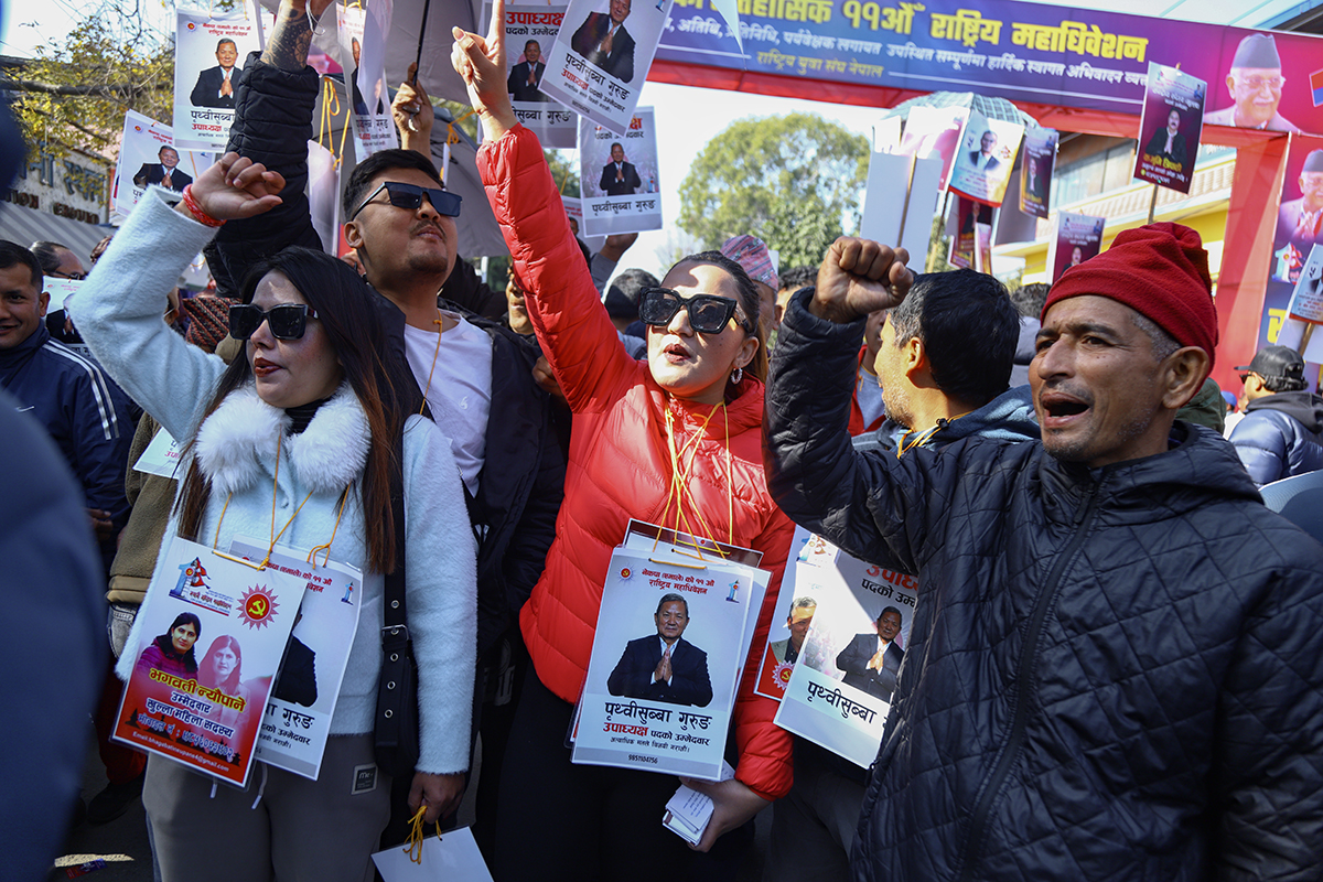 काठमाडौं, पुस १ गते। नेकपा (एमाले) को महाधिवेशन स्थल भृकुटीमण्डपमा चुनावी चहल पहल बढिरहेको छ। आगामी नेतृत्वका लागि केपी शर्मा ओली र ईश्वर पोखरेलबीच प्रतिस्पर्धा हुने भएपछि नेताहरू अहिले मत माग्न केन्द्रित भएका छन्।