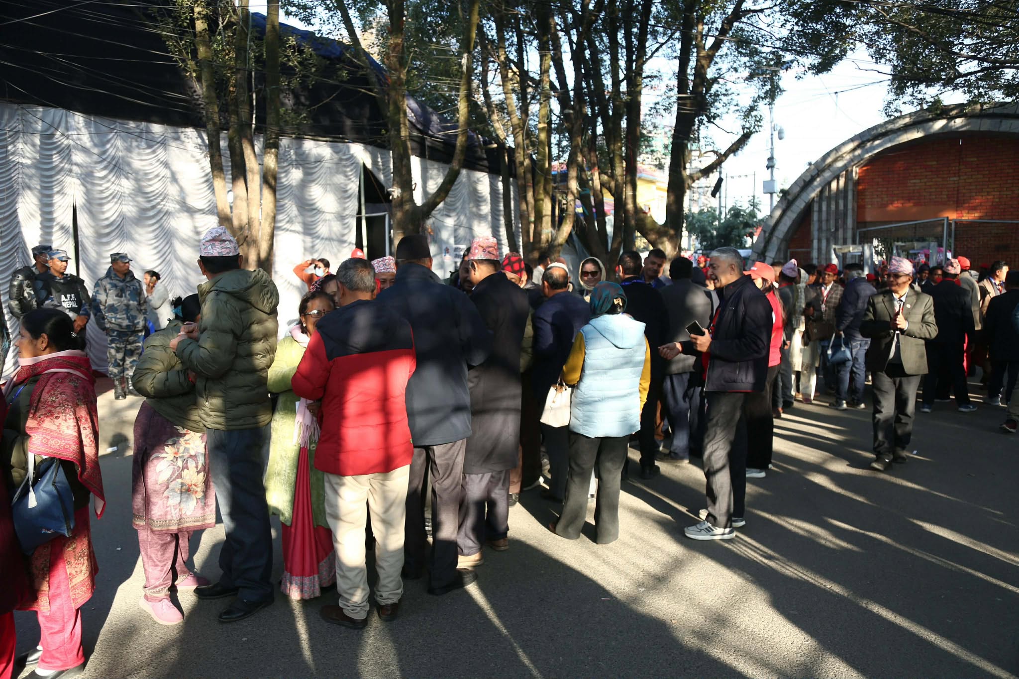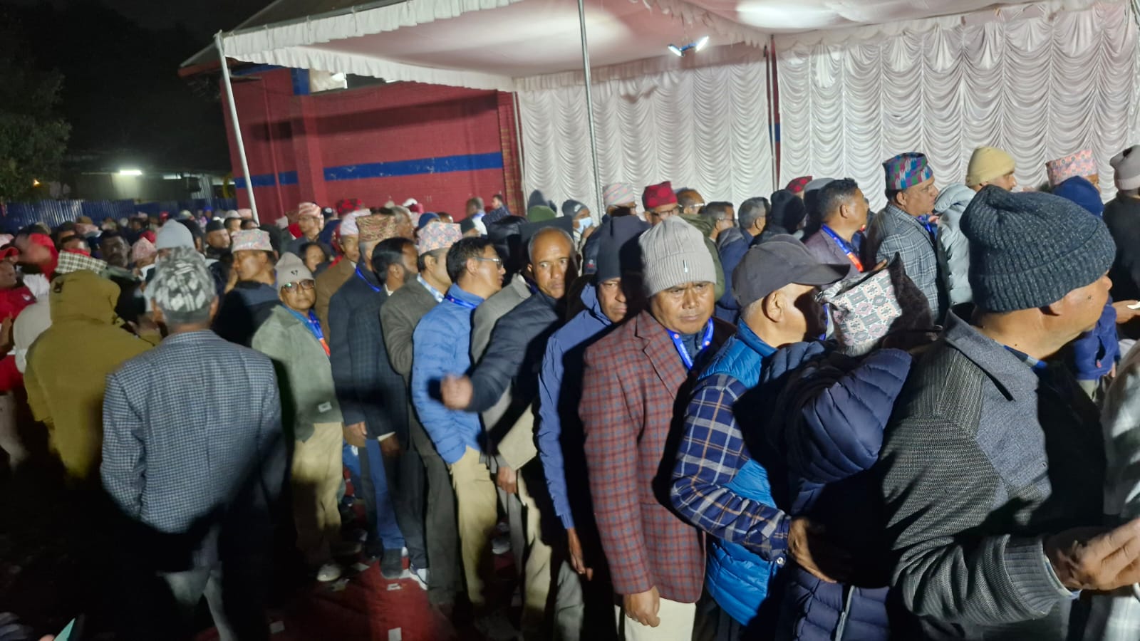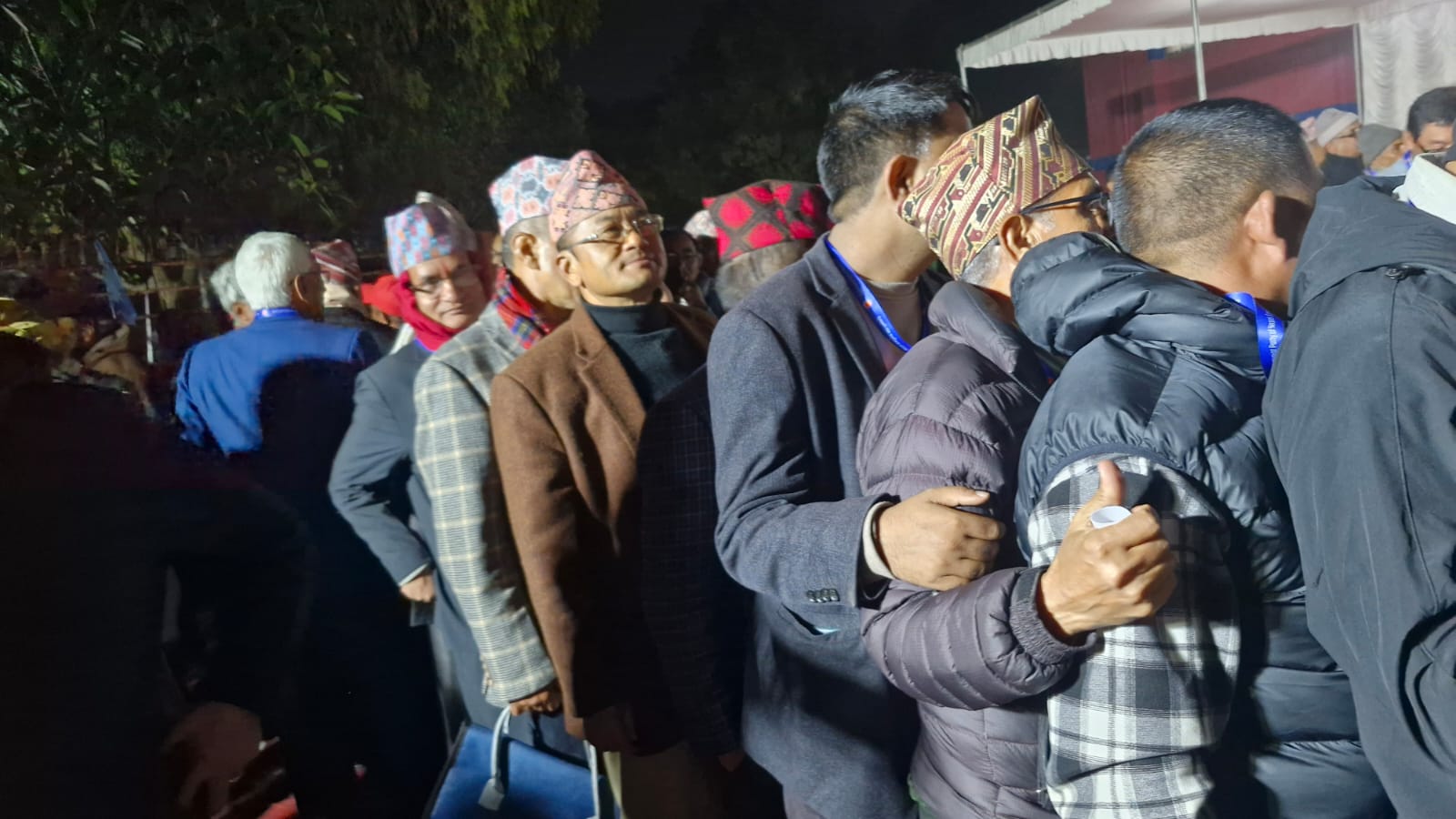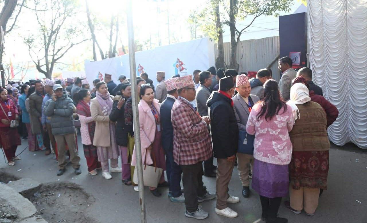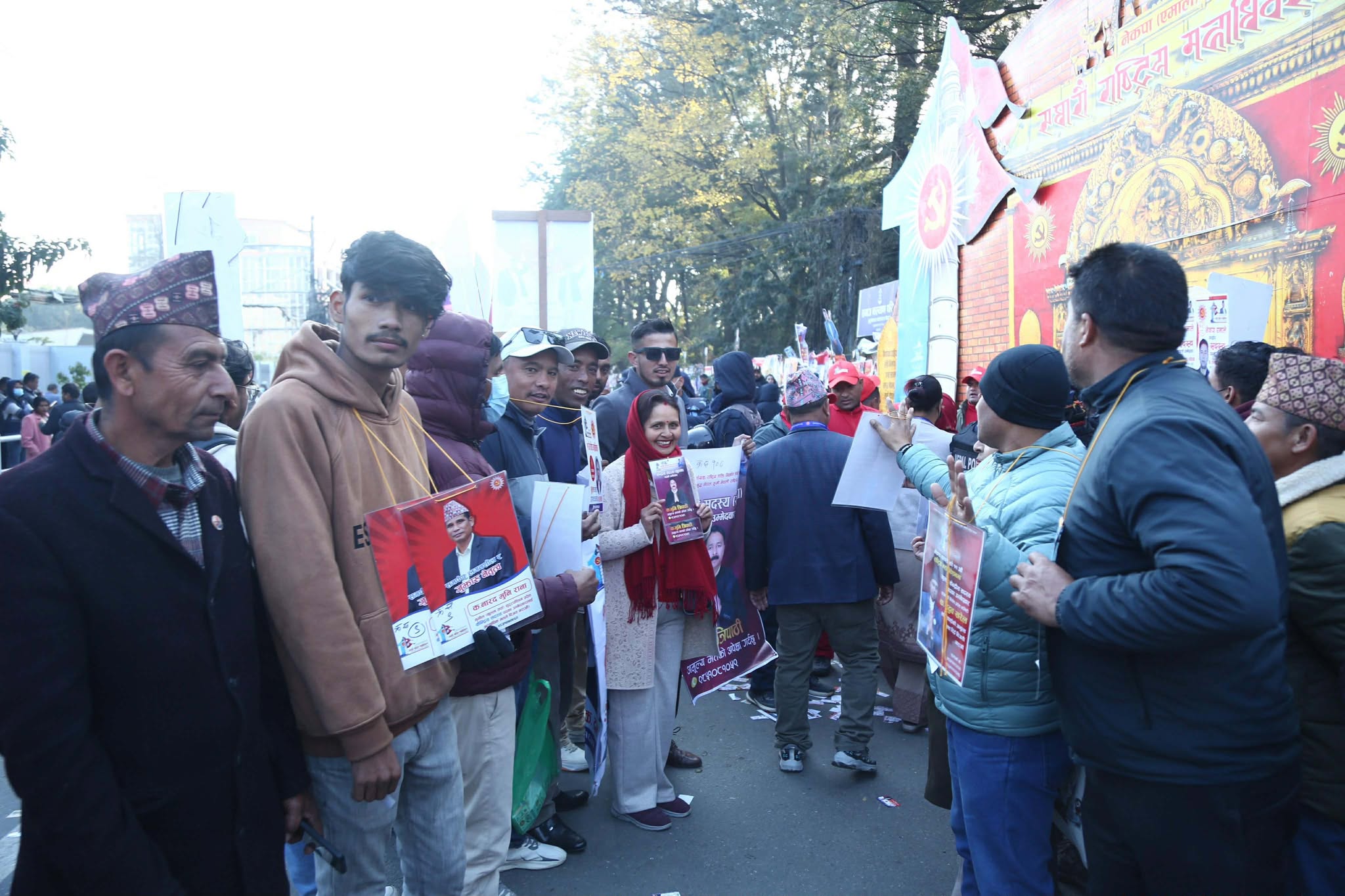 नेकपा (एमाले) को ११ औँ राष्ट्रिय महाधिवेशनको पाँचौँ दिन मतदानका लागि लाम बसेका प्रतिनिधिहरु । तस्बिरः केशब गुरुङ