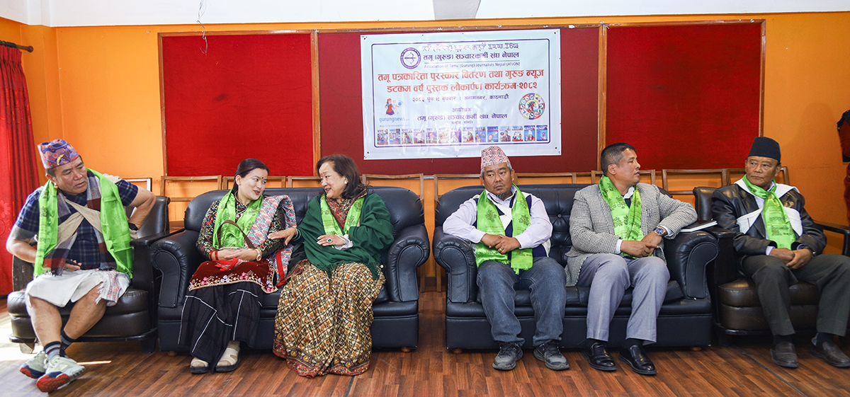 आदिवासी जनजाति उत्थान राष्ट्रिय प्रतिष्ठानका उपाध्यक्ष रेसम गुरुङको प्रमुख आतिथ्यमा भएको कार्यक्रममा गुरुङ समुदायले यस वर्षभित्र प्राप्त गरेका उपलब्धि समेटेर प्रकाशन गरिने गुरुङ वार्षिक मुखपत्र ‘गुरुङ न्युज डटकम’ विमोचन भएको छ।