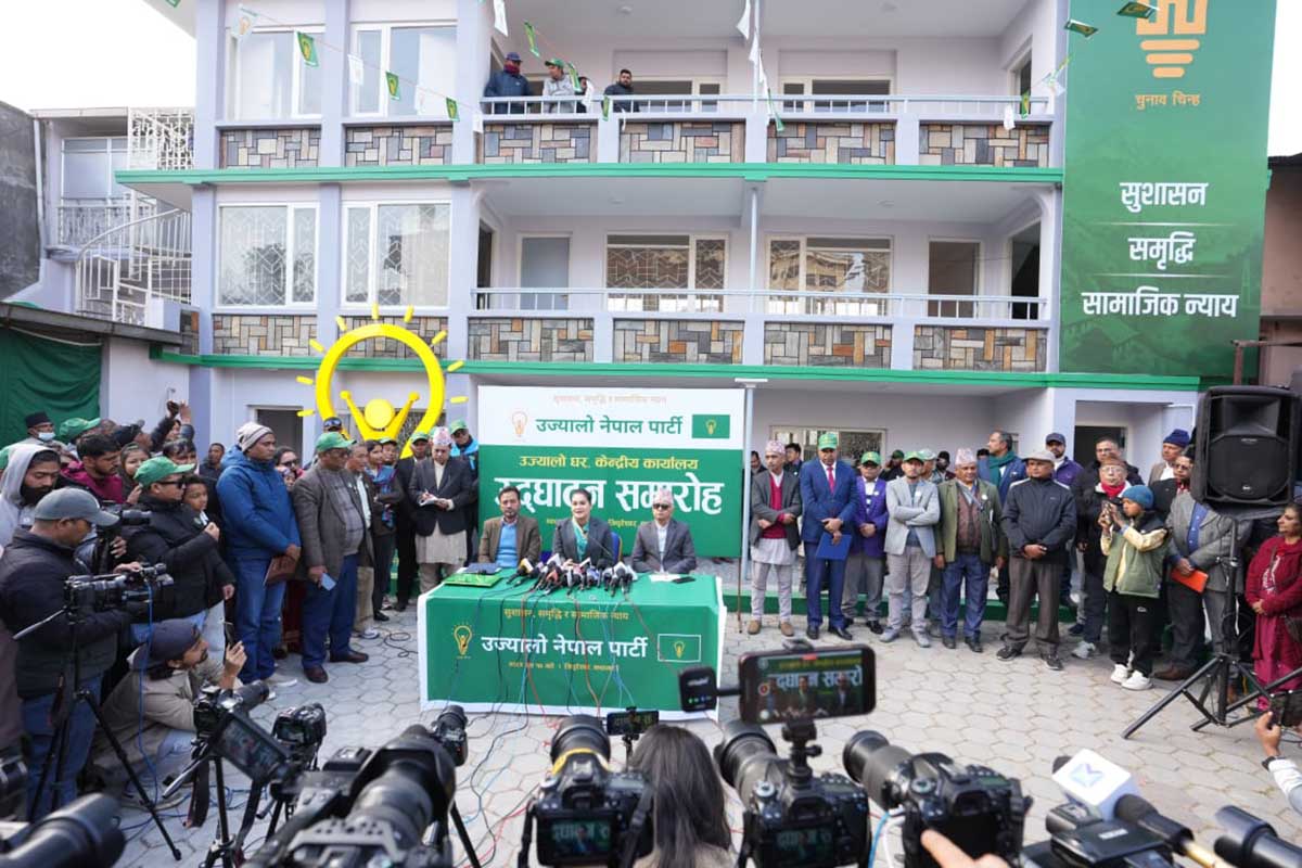 काठमाडौँ, पुस १० गते । उज्यालो नेपाल पार्टीको कार्यालय उज्यालो घरको औपचारिक उद्घाटन भएको छ ।