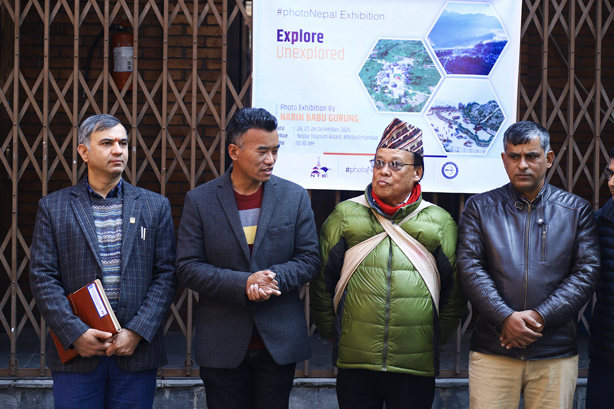 काठमाडौँ, पुस ११ गते । नेपाल पर्यटन बोर्डमा ड्रोनबाट खिचिएका तस्बिरको तीन दिने एकल फोटो प्रदर्शनी आयोजना भएको छ।