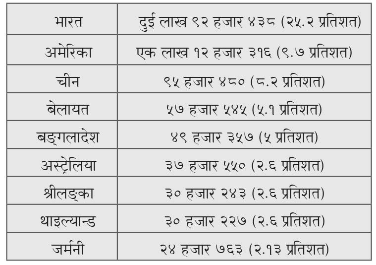 २. नेपाल पर्यटन बोर्डका अनुसार सन् २०२५ मा नेपालमा विभिन्न मुलुकबाट कति पर्यटकको आगमन भयो ?