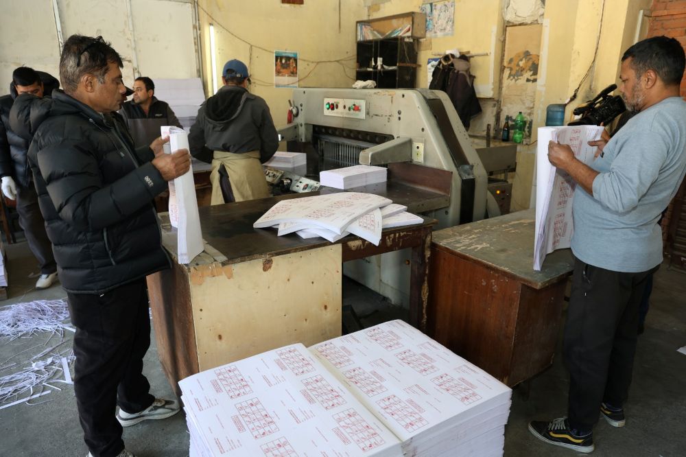 काठमाडौँ, पुस २४ गते । निर्वाचन आयोगले फागुन २१ मा हुने प्रतिनिधि सभा सदस्य निर्वाचन, २०८२ का लागि नमूना मतपत्र छाप्न सुरु गरेको छ । जनक शिक्षा सामग्री केन्द्र भक्तपुरमा दश लाख नमूना मतपत्र छाप्न सकिएकाे हाे ।