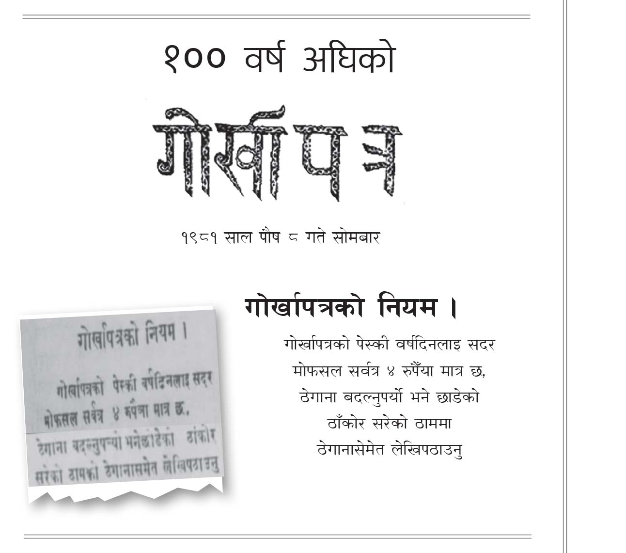१०० वर्ष अघिको गोर्खापत्र