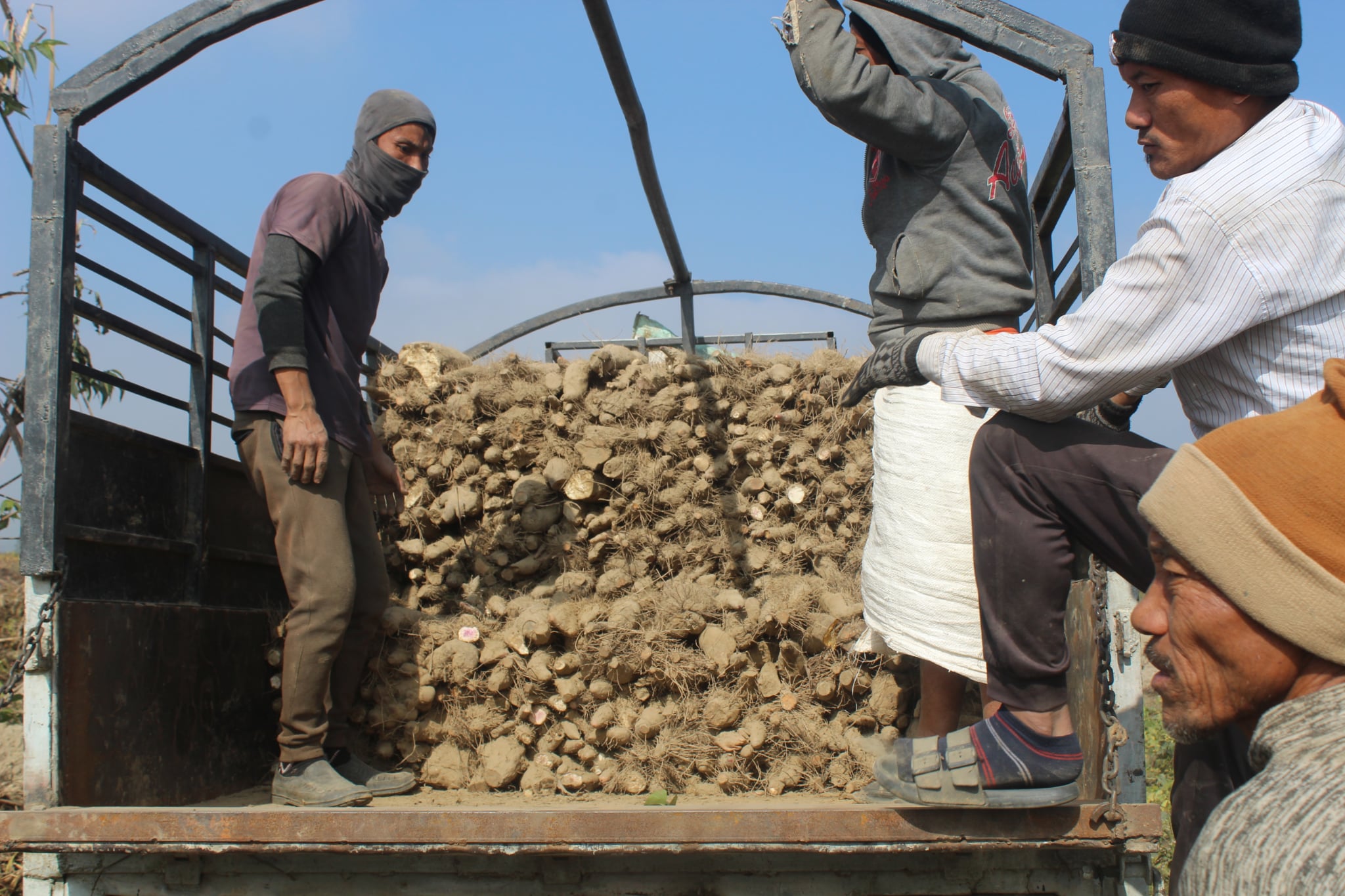 धमाधम मजदुर लगाएर तरुल खनिरहेका व्यापारीलाई काठमाडौँ पुर्याएर तरुल बेच्न उत्तिकै भ्याइनभ्याइ छ । माघे सङ्क्रान्ति आउन अब एक साता मात्रै बाँकी छ । बागमती नगरपालिका–४, जिरायतका किसान विशाल वाइबाले आफूले यो वर्ष पाँच कठ्ठामा रोपेको तरुल व्यापारीलाई ७० हजार रुपियाँमा बिक्री गरेको जानकारी दिनुभयो । जमिनभित्र रहेको तरुल के कति फलेको छ भन्ने थाहा नहुने भएकाले व्यापारीले बोट हेरेर मूल्य लगाउने गरेको वाइबाको भनाइ छ ।