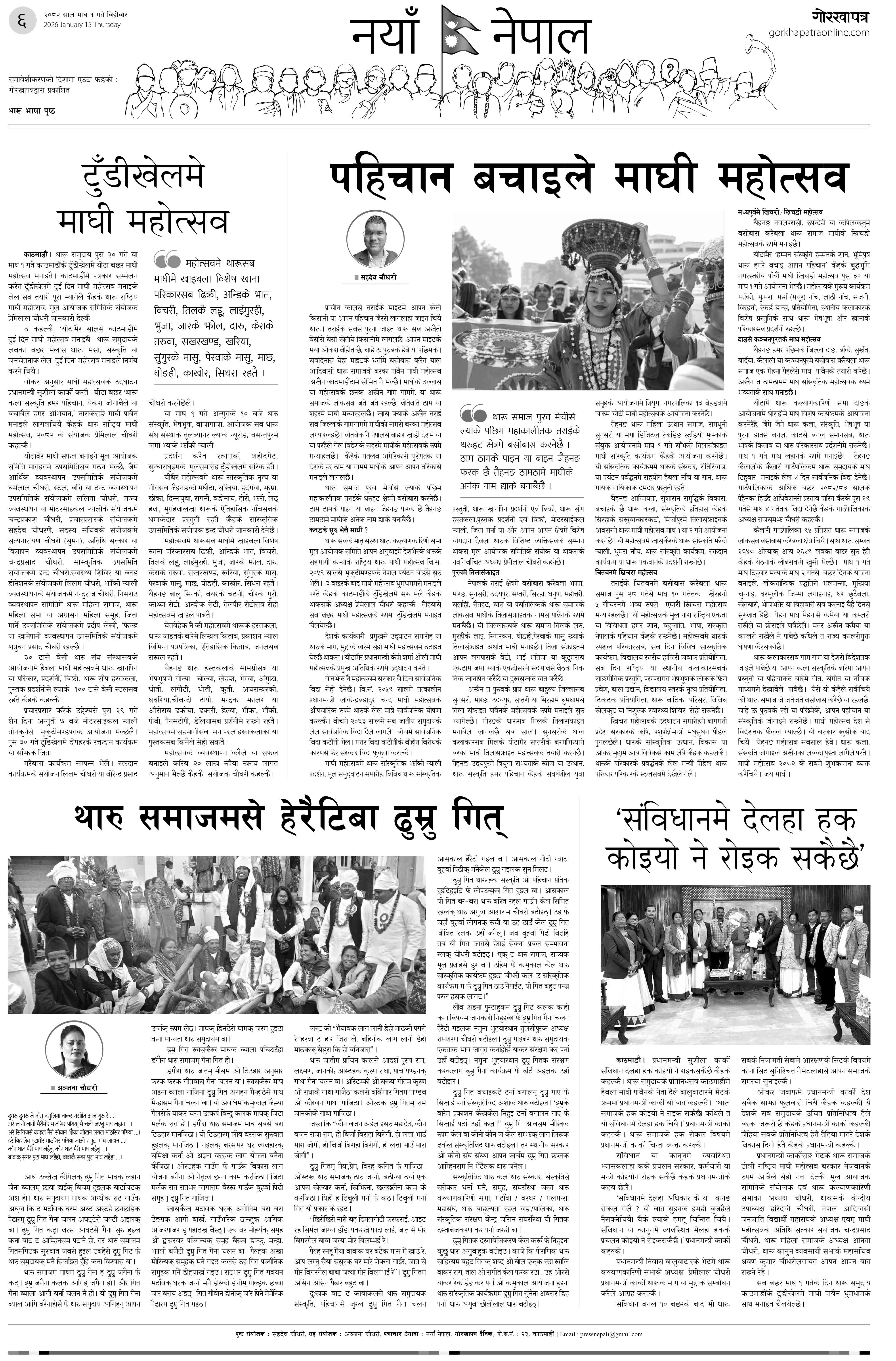 समावेशीकरणको दिशामा नयाँ फड्को : गोरखापत्रद्वारा प्रकाशित थारू भाषा