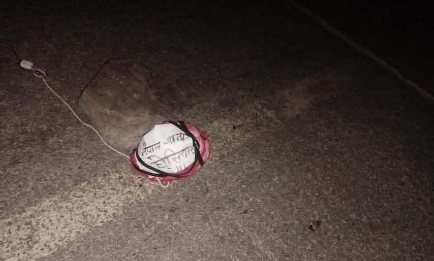 झापाको पूर्वपश्चिम राजमार्गस्थित शिवसताक्षी नगरपालिका १० कनकाई माईको पुलमा अज्ञात समूहले समाजलाई आतङ्कित पार्ने गरी कागजको डल्लोभित्र होसियार लेख्दा तीन घण्टा यातायात अवरुद्ध भएको छ ।