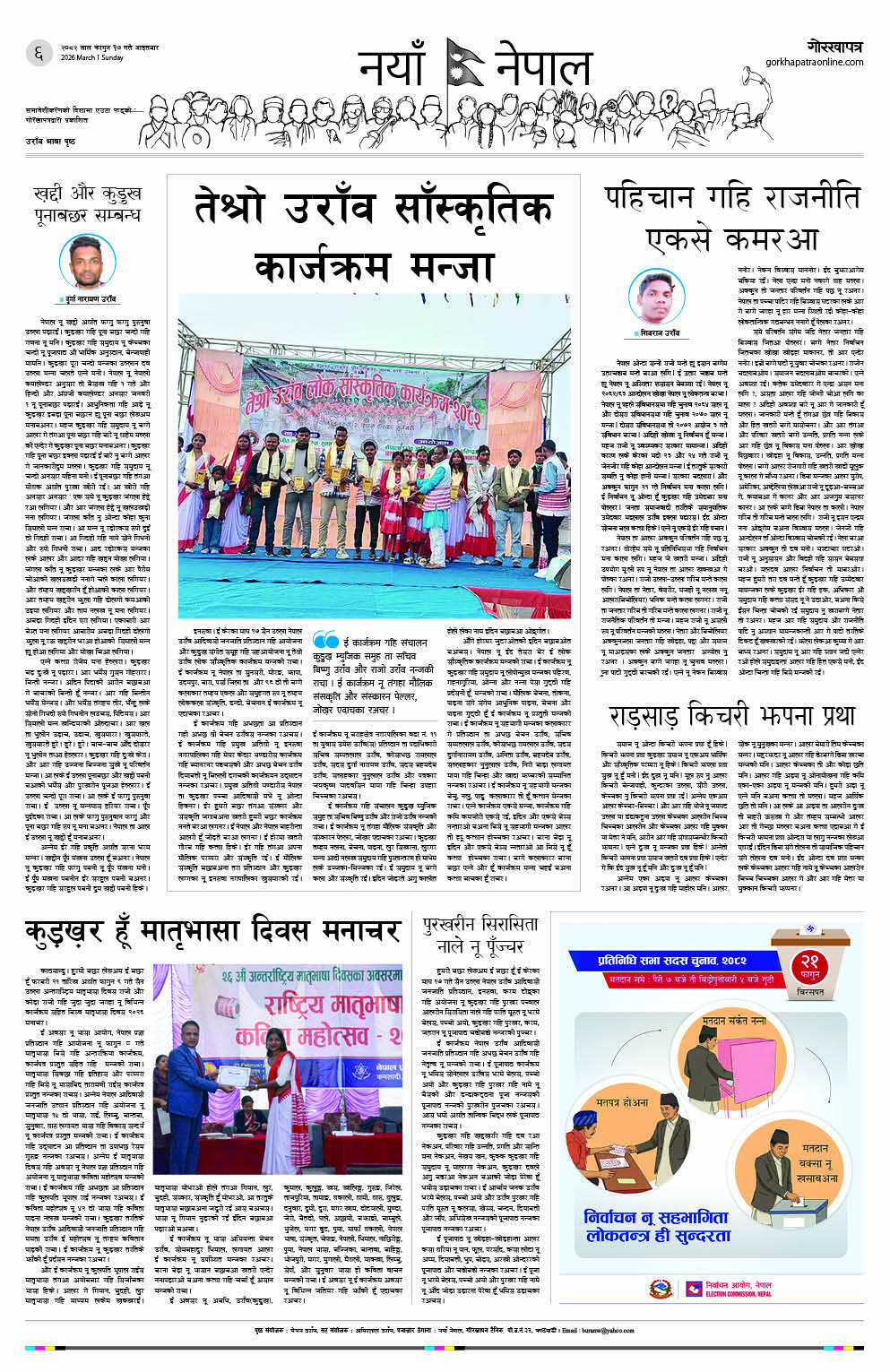 समावेशीकरणको दिशामा नयाँ फड्को : गोरखापत्रद्वारा प्रकाशित उराँव भाषा