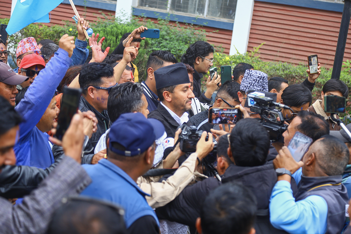 निर्वाचित भएपाछि पत्रकारसँग जगदीश खरेल । तस्बिर: केशब गुरुङ ।