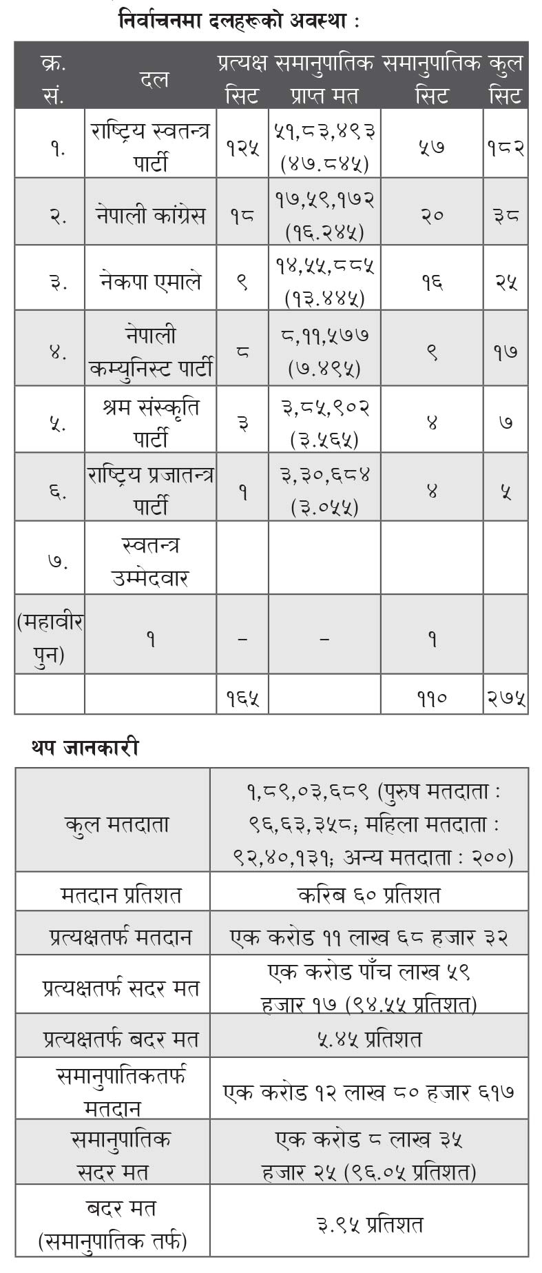 निर्वाचनमा दलहरूको अवस्था : थप जानकारी