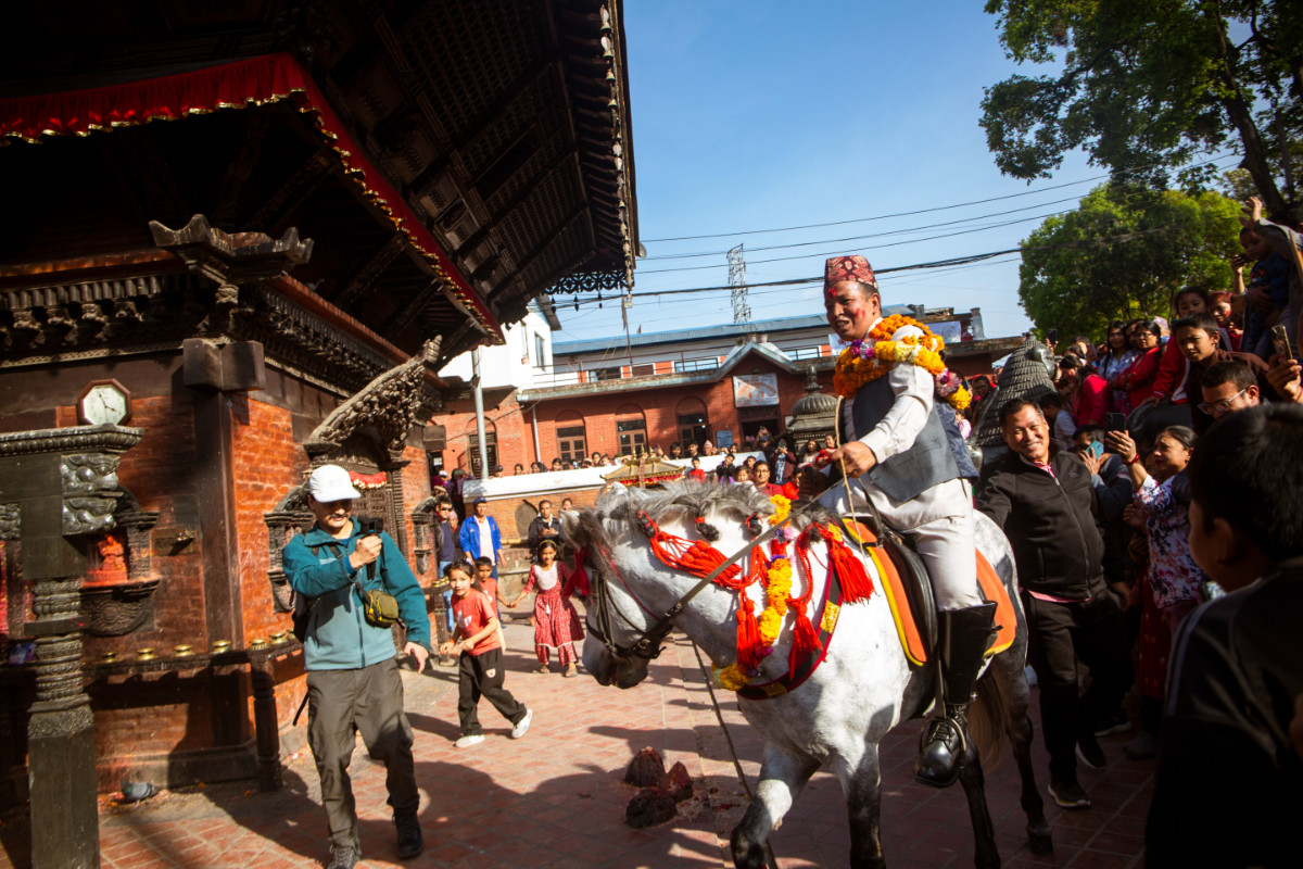 सर्वसाधारणको उपस्थितिमा रमेश महर्जनले पाटनको मूल चोकमा ‘संरक्षण’ घोडा चढेर जात्राको सुरुवात गर्नुभयो। मल्लकालदेखि सुरु भएको यो जात्रामा स्थानीयको बाक्लो उपस्थिति थियो । मल्ल राजाको प्रतीकसहित सर्वसाधारणले संरक्षण घोडालाई पछ्याउँदा चोकचोकमा घोडेजात्राको रौनकता थपिएको थियो ।
