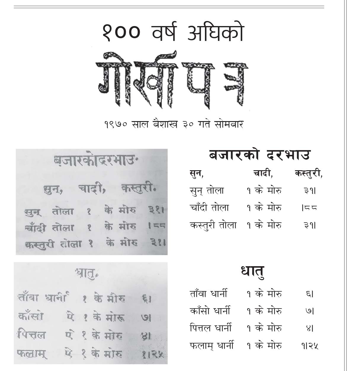१०० वर्ष अघिको गोर्खापत्र