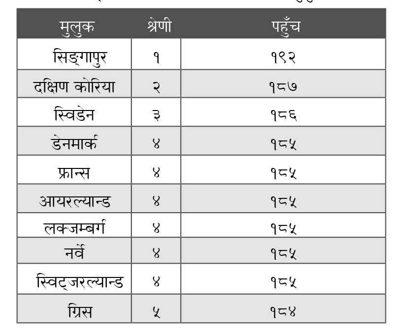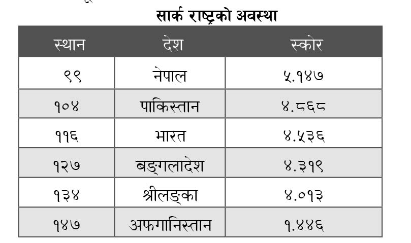 यस सूचीको अन्तिममा अफगानिस्तान रहेको छ ।
