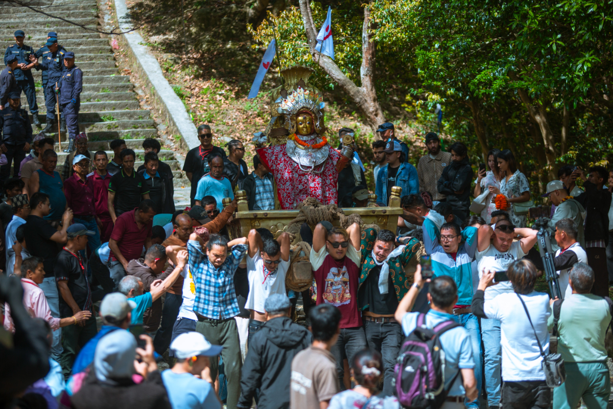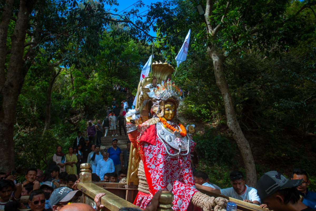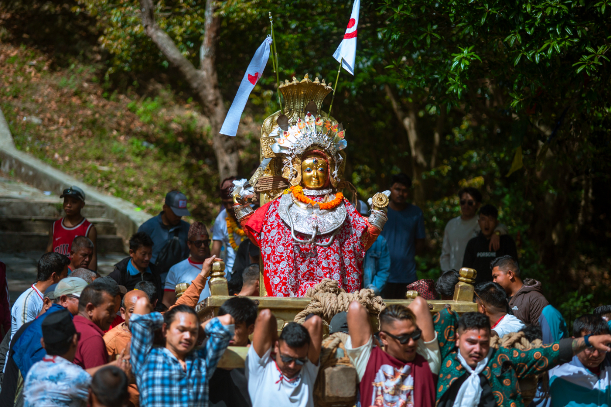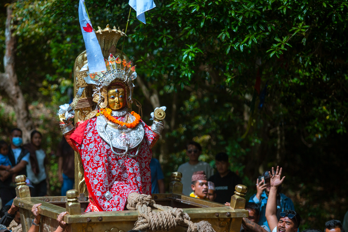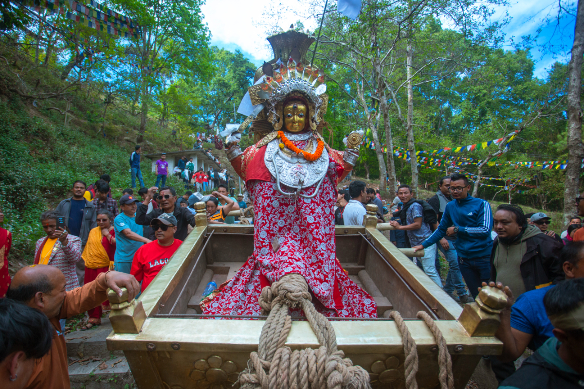 काठमाडौँ, चैत १९ गते । साँखुमा बज्रयोगिनी जात्रा बिहीबारबाट सुरु भएको छ । जात्राका लागिका बज्रयोगिनी मन्दिरबाट बज्रयोगिनीसँगै चिभाः द्यः, सिंहमुखी र बाघमुखी मूर्तिलाई खटमा बोकेर बाजागाजासहित साँखुमा नगर प्रवेश गराइएको छ । गला र दुवै हातमा नागमाला, शरीरमा भोटो, दायाँ हातमा खड्ग, बायाँमा कमलको फूल, हीरामोती जडित मुकुटले सजिएकी तीन नेत्र भएकी बज्रयोगिनीलाई जात्रा गर्ने परम्परा छ ।
