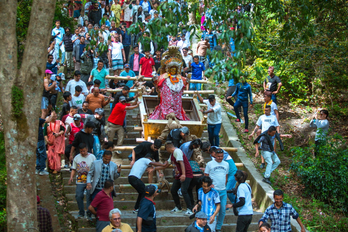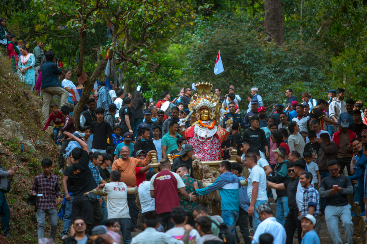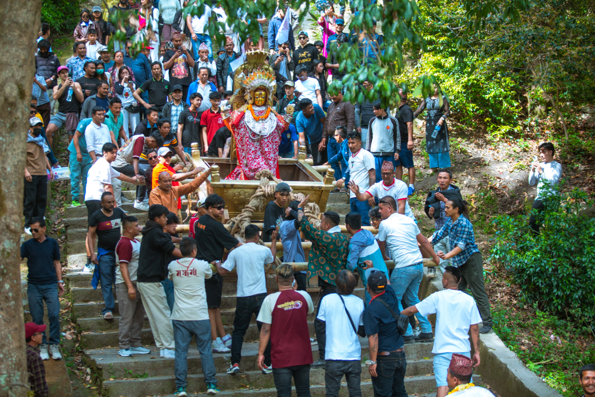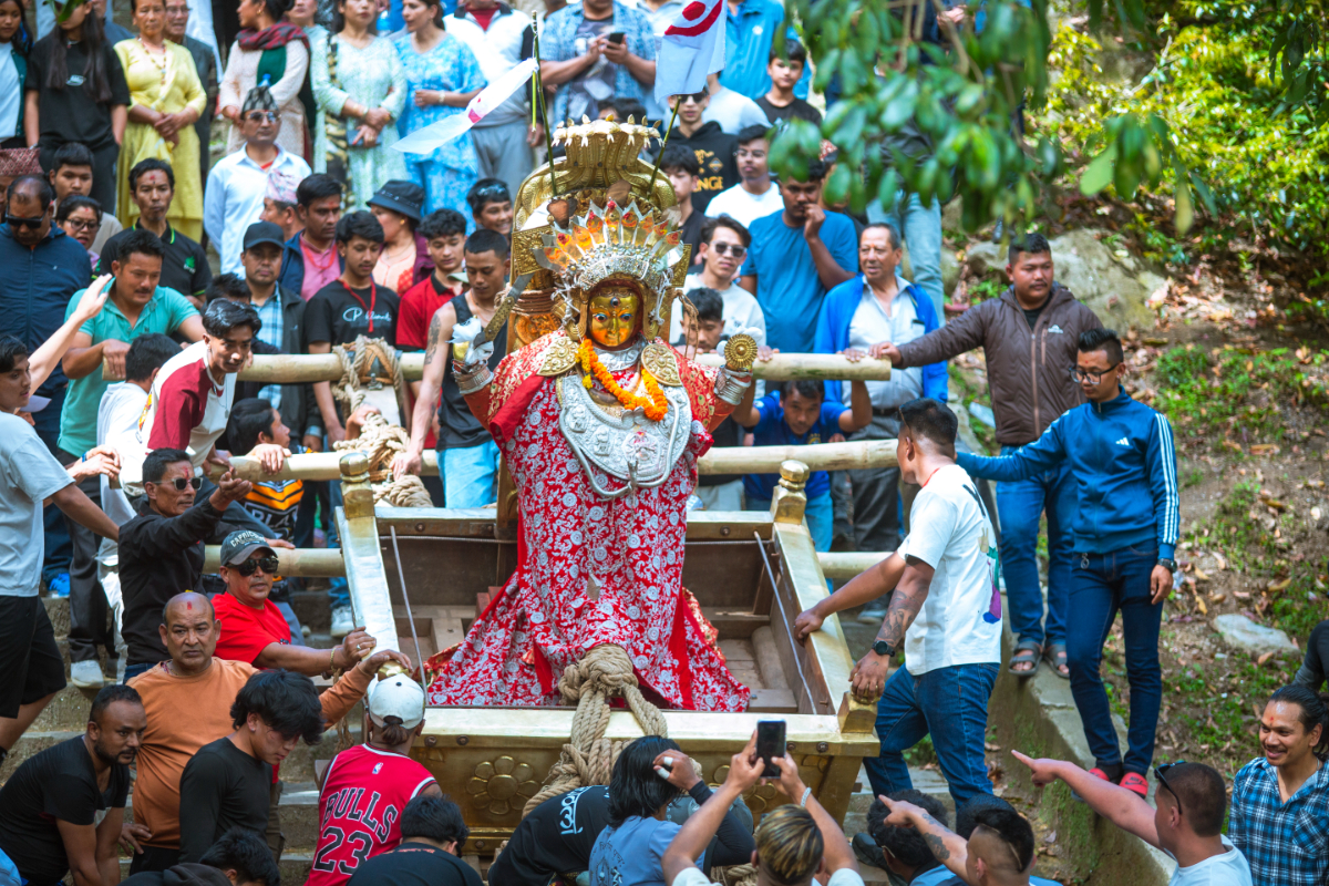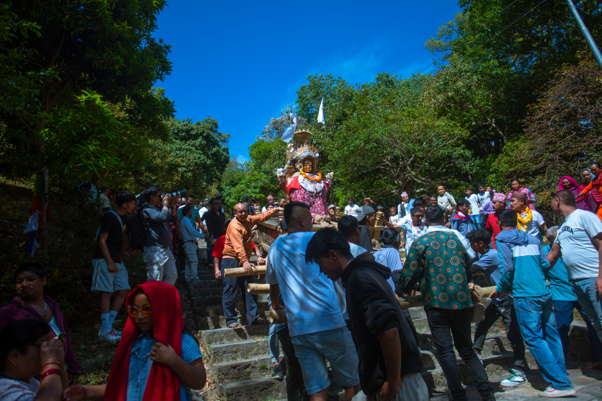 काठमाडौँ, चैत १९ गते । साँखुमा बज्रयोगिनी जात्रा बिहीबारबाट सुरु भएको छ । जात्राका लागिका बज्रयोगिनी मन्दिरबाट बज्रयोगिनीसँगै चिभाः द्यः, सिंहमुखी र बाघमुखी मूर्तिलाई खटमा बोकेर बाजागाजासहित साँखुमा नगर प्रवेश गराइएको छ । गला र दुवै हातमा नागमाला, शरीरमा भोटो, दायाँ हातमा खड्ग, बायाँमा कमलको फूल, हीरामोती जडित मुकुटले सजिएकी तीन नेत्र भएकी बज्रयोगिनीलाई जात्रा गर्ने परम्परा छ ।