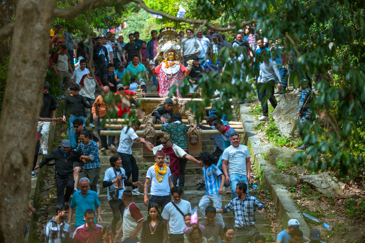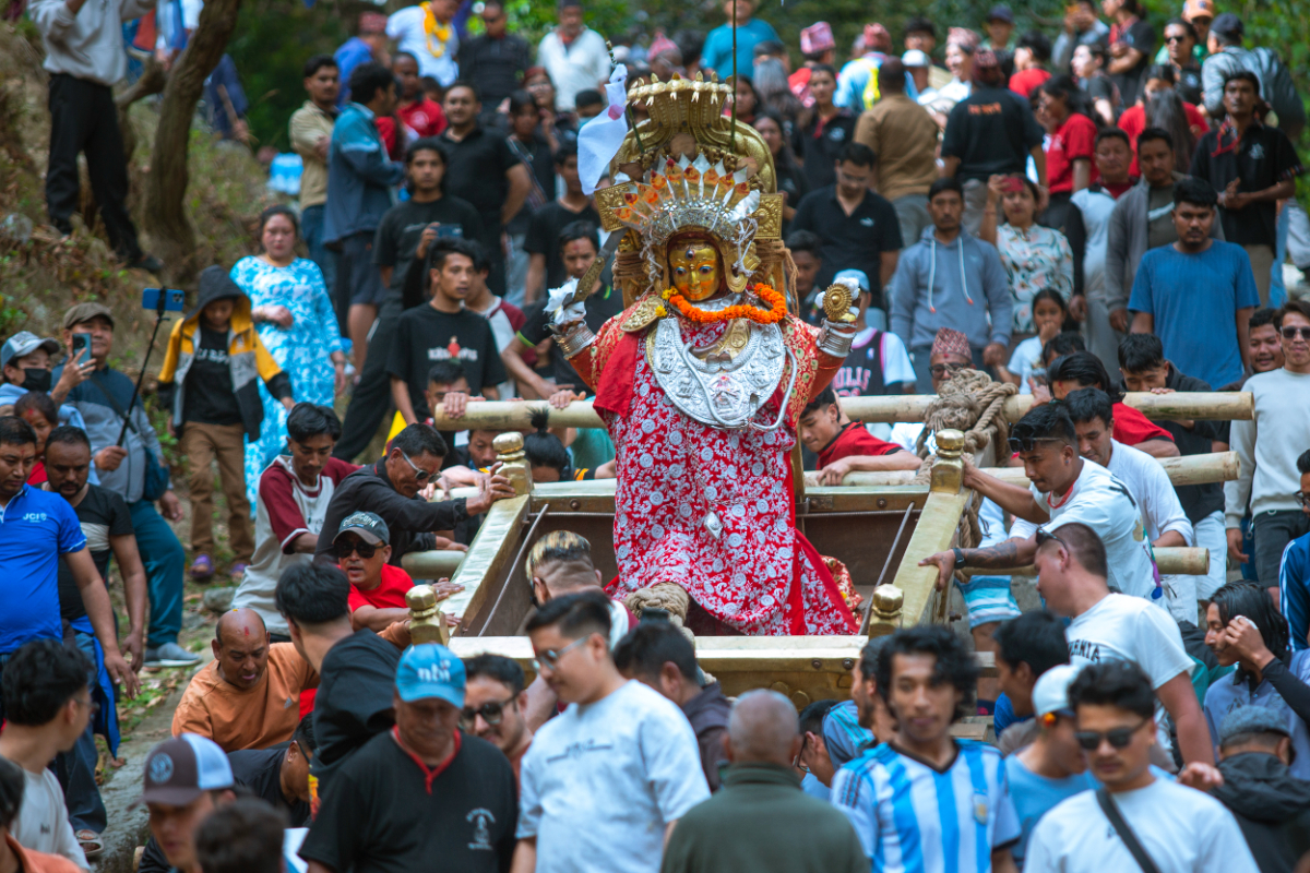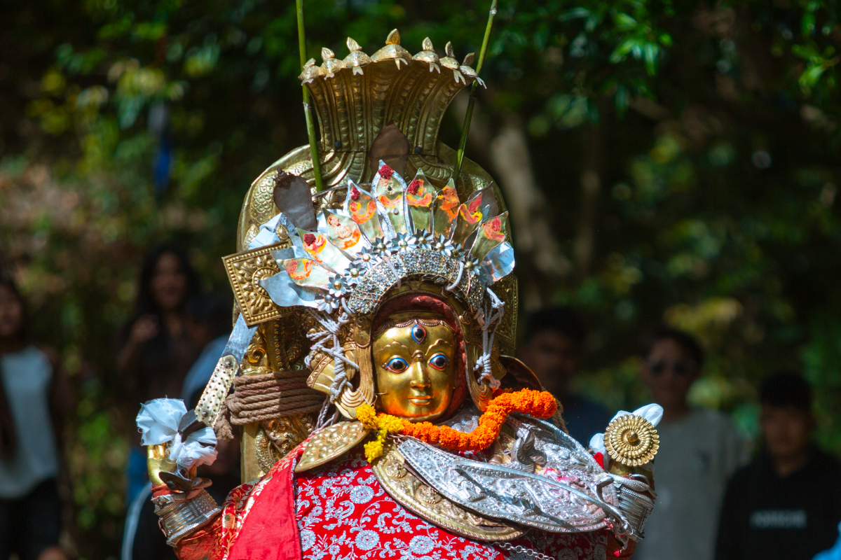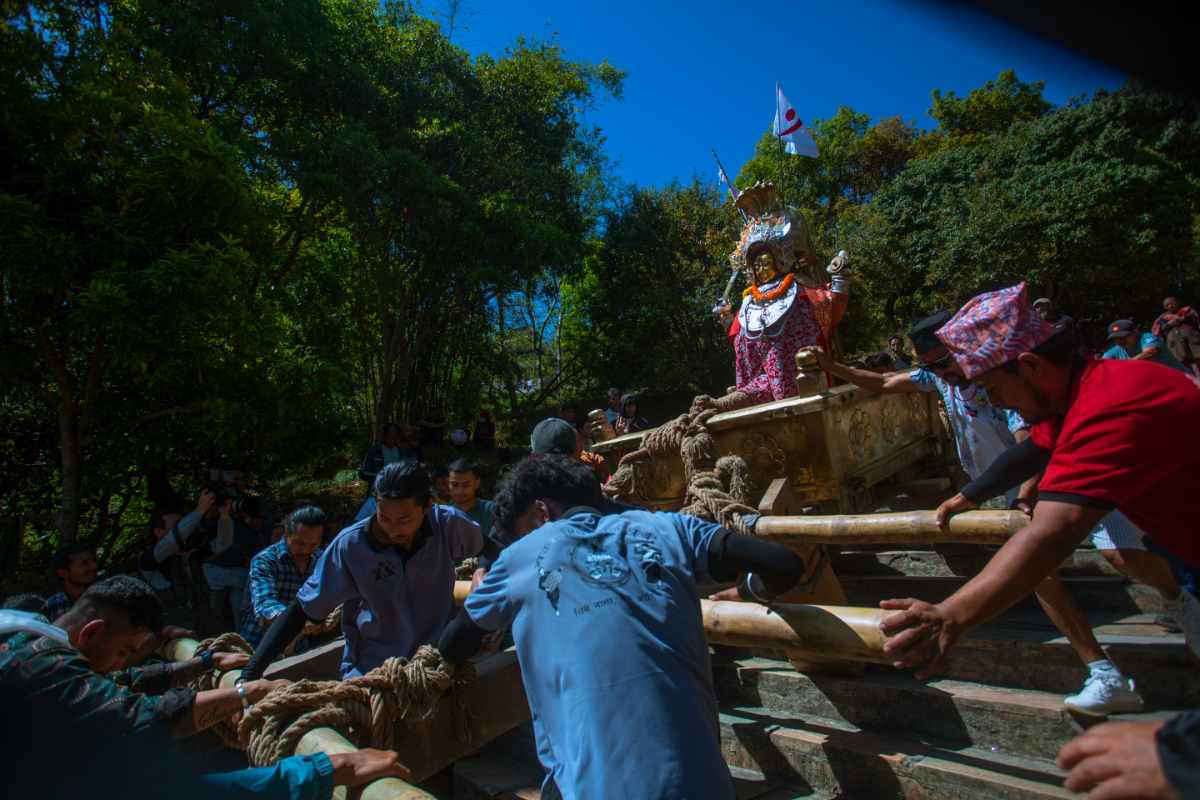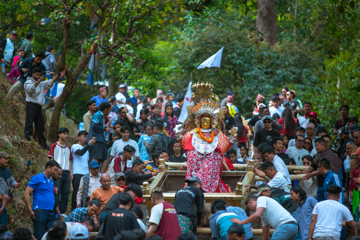 काठमाडौँ, चैत १९ गते । साँखुमा बज्रयोगिनी जात्रा बिहीबारबाट सुरु भएको छ । जात्राका लागिका बज्रयोगिनी मन्दिरबाट बज्रयोगिनीसँगै चिभाः द्यः, सिंहमुखी र बाघमुखी मूर्तिलाई खटमा बोकेर बाजागाजासहित साँखुमा नगर प्रवेश गराइएको छ । गला र दुवै हातमा नागमाला, शरीरमा भोटो, दायाँ हातमा खड्ग, बायाँमा कमलको फूल, हीरामोती जडित मुकुटले सजिएकी तीन नेत्र भएकी बज्रयोगिनीलाई जात्रा गर्ने परम्परा छ ।