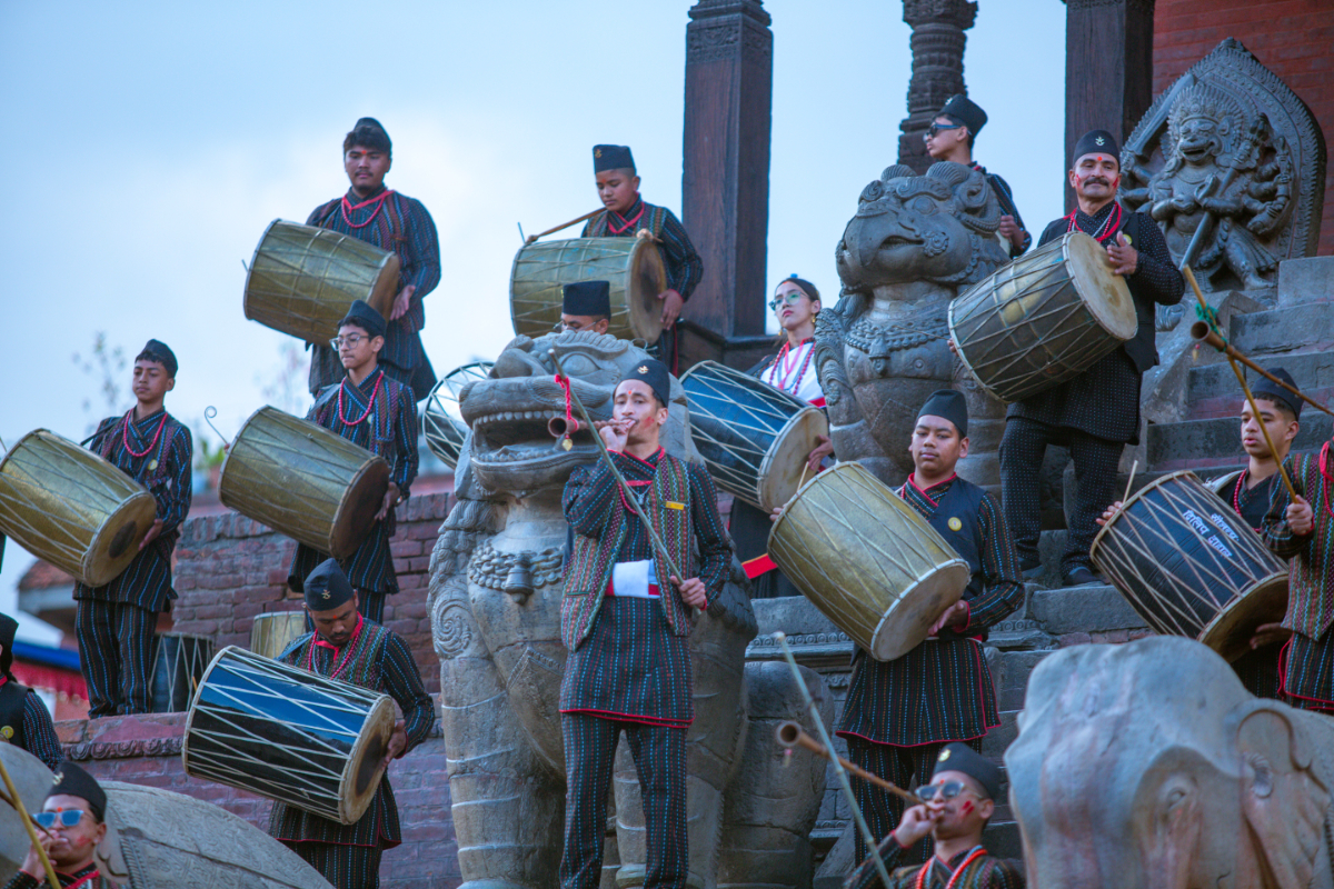 काठमाडौं, चैत २६ गते । बिस्का जात्राको पूर्व सन्ध्यामा तःमारी क्षेत्रमा भव्य धिमे नृत्य प्रस्तुत गरिएको छ।