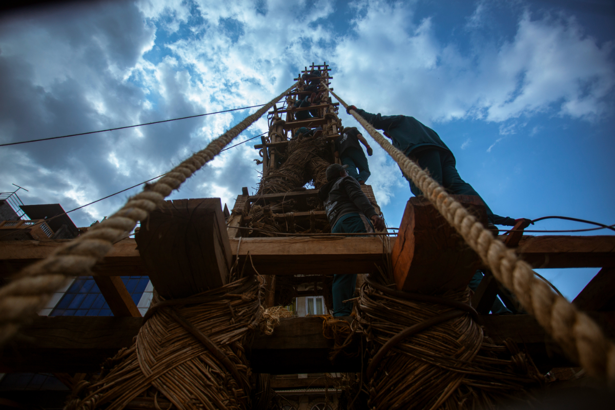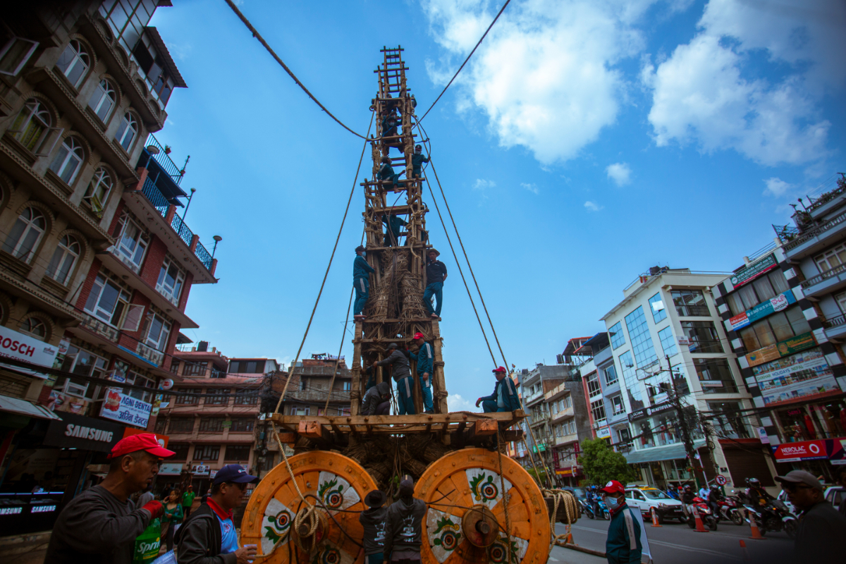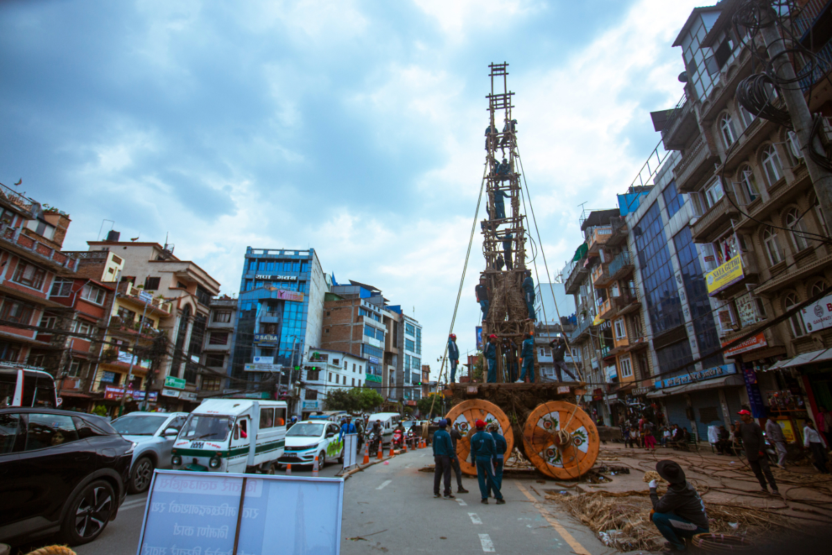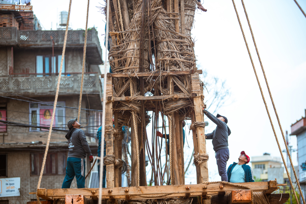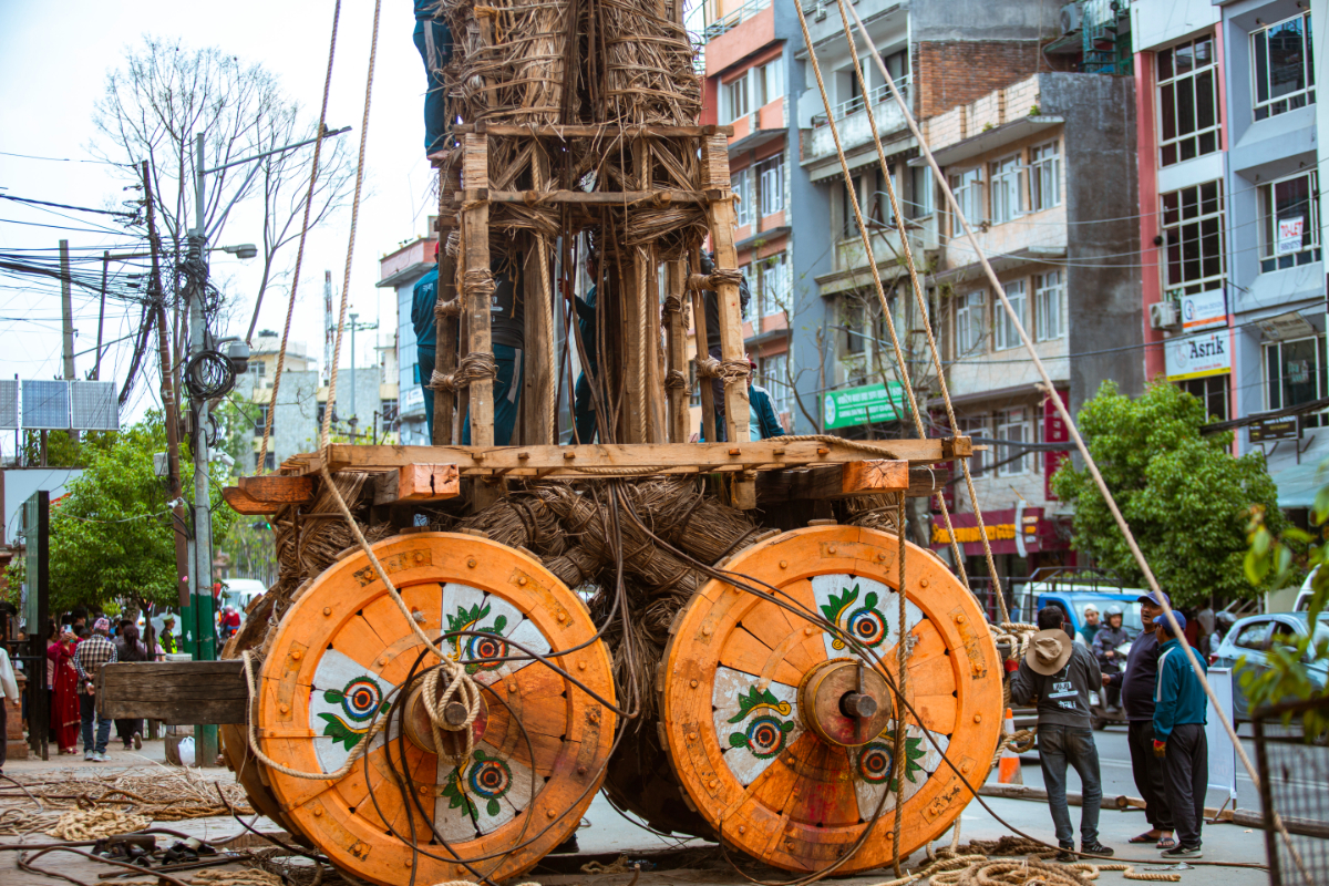 ‘महास्नानको भोलिपल्ट रथ निर्माण गर्ने स्थानमा खाल्डो खनिसकेपछि बाराहीहरूले रथमा रहने काठसम्बन्धी काम सुरु गर्छन’, उहाँ भन्नुहुन्छ, ‘याःक ख’ सम्मको काठको काम सकिसकेपछि ञवाले त्यसमा फेरि एक तल्ला थप्ने र बेत, डोरी, ‘लसी’ अर्थात् नेपाल भाषामा १६ वटा लामो काठ बनाउने कामलाई पूर्णता दिन्छन्। रथमा रहेको अधिकांश काठको काम बाराहीले गर्छन्। रथ बनाउने काममा ३५ जना खटिएका छन् । यसरी मच्छिन्द्ननाथको रथारोहणको दिन ‘बायम्व’ पनि राख्ने गर्छन्।