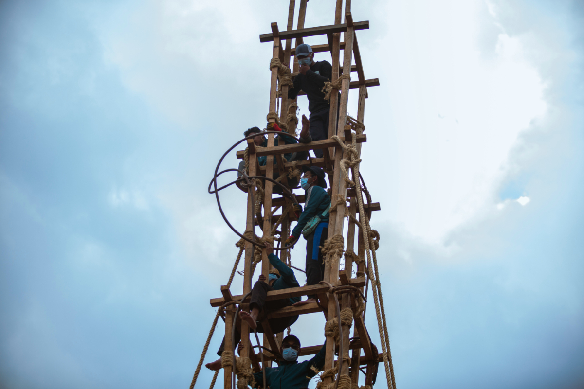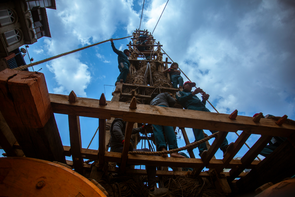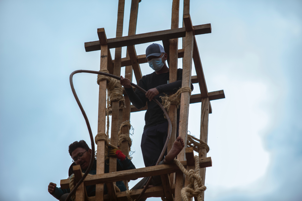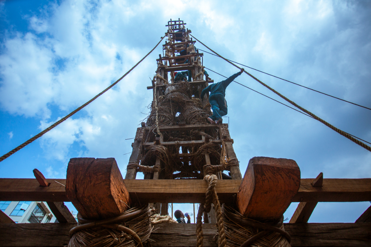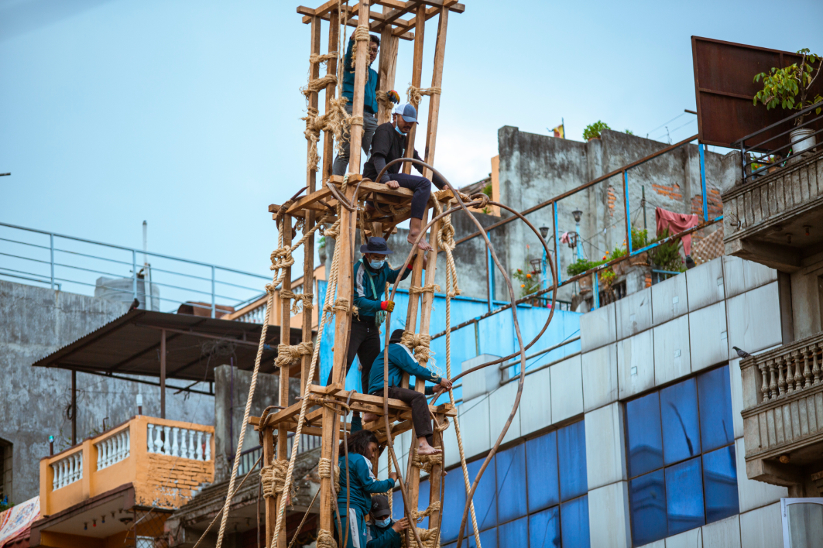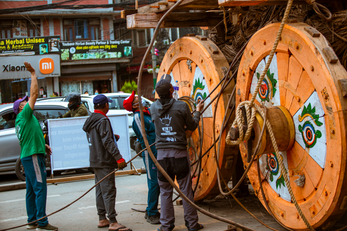 ‘महास्नानको भोलिपल्ट रथ निर्माण गर्ने स्थानमा खाल्डो खनिसकेपछि बाराहीहरूले रथमा रहने काठसम्बन्धी काम सुरु गर्छन’, उहाँ भन्नुहुन्छ, ‘याःक ख’ सम्मको काठको काम सकिसकेपछि ञवाले त्यसमा फेरि एक तल्ला थप्ने र बेत, डोरी, ‘लसी’ अर्थात् नेपाल भाषामा १६ वटा लामो काठ बनाउने कामलाई पूर्णता दिन्छन्। रथमा रहेको अधिकांश काठको काम बाराहीले गर्छन्। रथ बनाउने काममा ३५ जना खटिएका छन् । यसरी मच्छिन्द्ननाथको रथारोहणको दिन ‘बायम्व’ पनि राख्ने गर्छन्।
