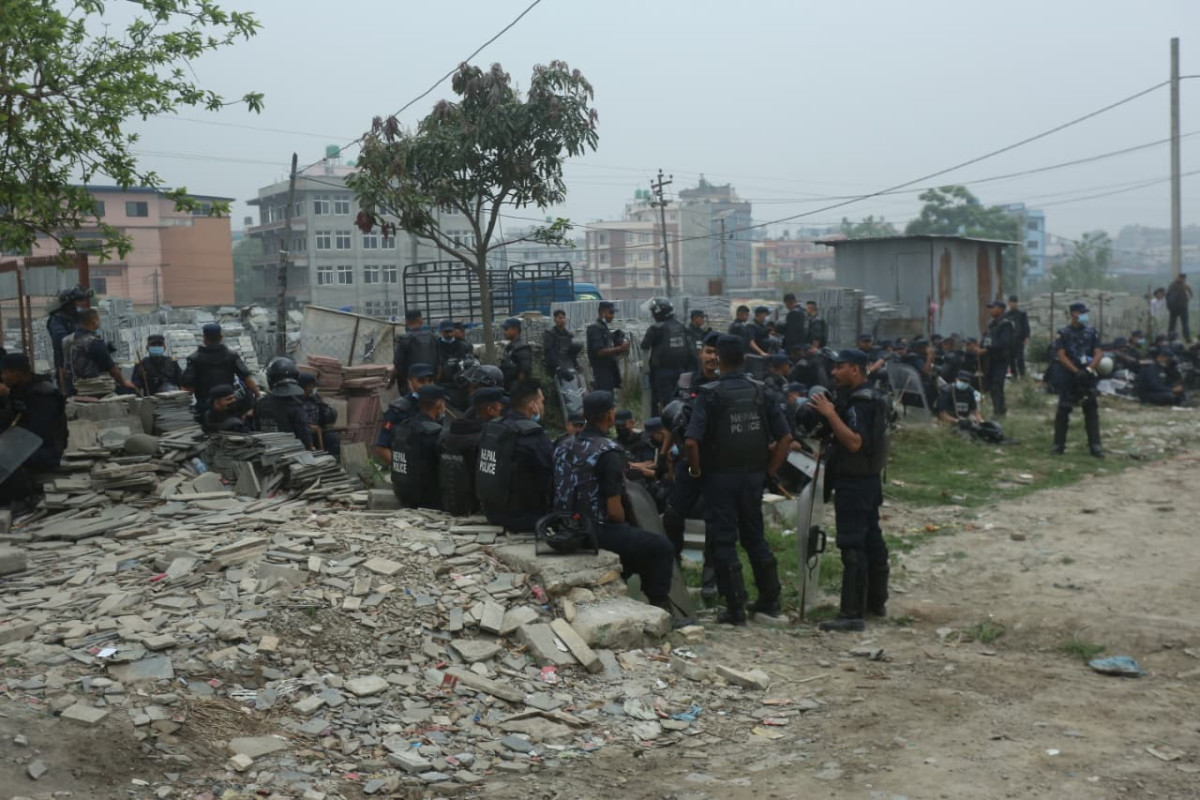 भक्तपुर, वैशाख १३ गते । मनोहरास्थित सुकुम्बासी बस्तीमा आइतबार सुरक्षाकर्मीको बाक्लो उपस्थितिमा डोजर चलाइएको छ । अधिकार क्षेत्र मिचेर बनाइएका संरचना हटाउने भन्दै प्रशासनले सशस्त्र प्रहरी र नेपाल प्रहरी परिचालन गरी बस्तीमा कारबाही गरेको हो ।