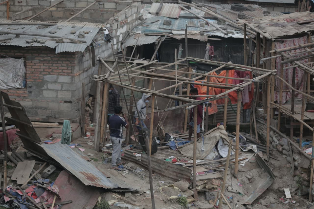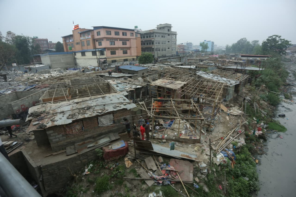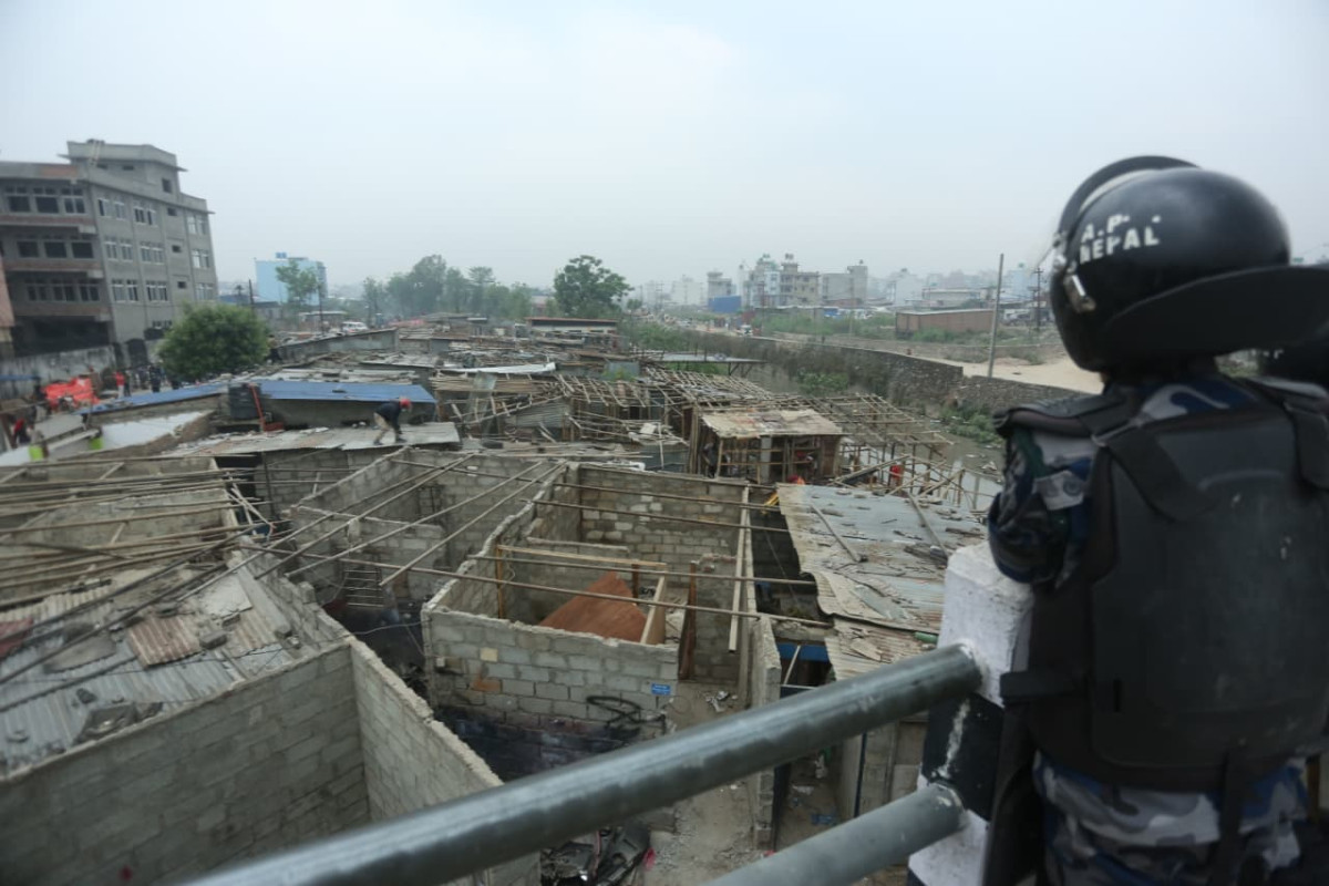 बस्ती भत्काउनका लागि ठुला डोजर (जेसीबी) तैनाथ गरिएको छ । केही स्थानीय बासिन्दाहरू आफैँले आफ्ना छाप्रा तथा बाँसका संरचनाहरू भत्काउँदै गरेको दृश्यले पीडितहरूको पीडा झल्काउँछ ।
