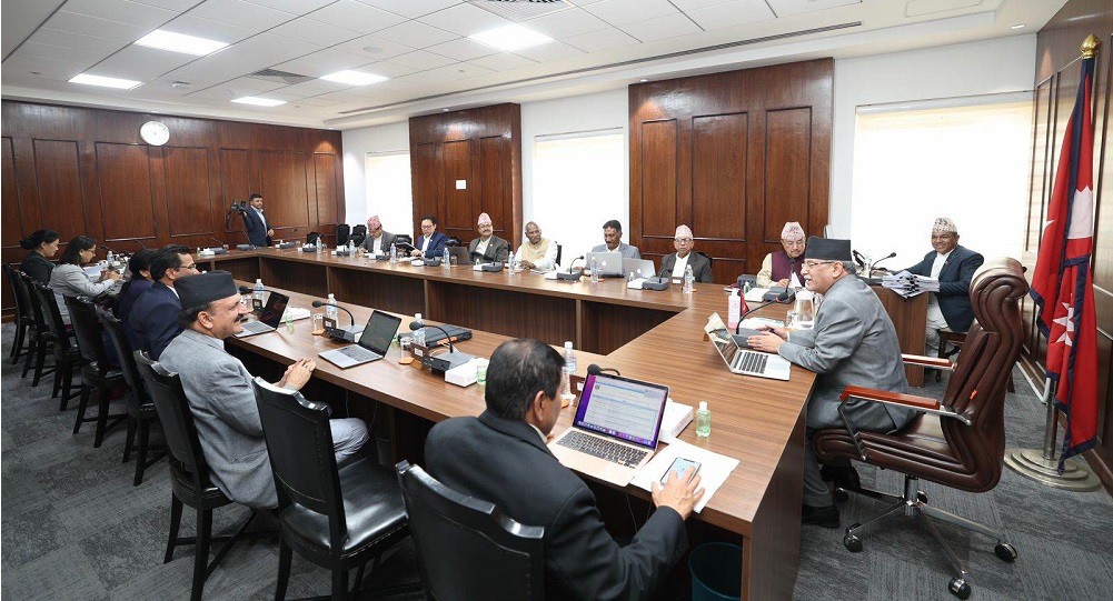 काठमाडौं, वैशाख ५ गते । मन्त्रिपरिषद् बैठक सिंहदरबारमा सुरु भएको छ । प्रधानमन्त्री तथा मन्त्रिपरिषद् कार्यालय सिंहदरबारमा मङ्गलबार साँझ बैठक सुरु भएको हो । आजको बैठक नियमित हो ।