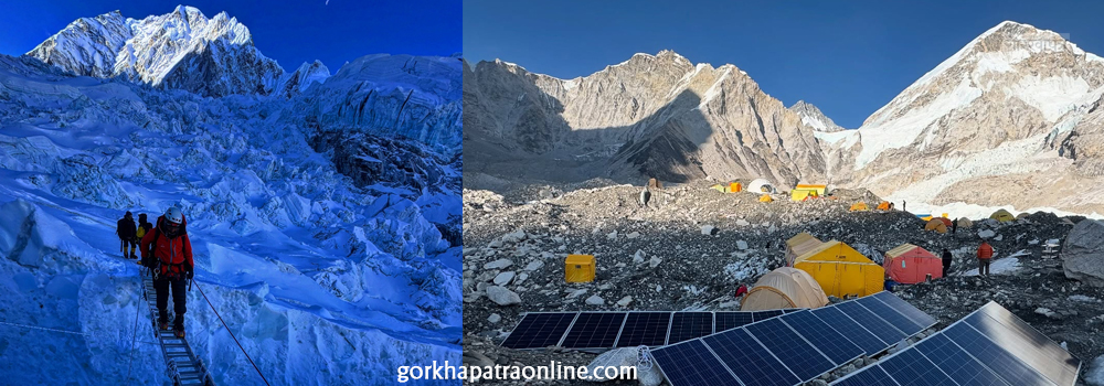 समुद्री सतहबाट पाँच हजार ३६४ मिटर उचाइमा रहेको आधारशिविर क्षेत्रमा ‘लाउन्ड्री’, ‘क्याफे’, ‘बार’ आदिको व्यवस्थापन गरिएको छ । पाँच सय भन्दा बढी पाल टाँगिएका छन् । एटके एक्सपीडिसन कम्पनीका प्रबन्ध निर्देशक लाक्पा शेर्पाले विभिन्न कम्पनीले आरोहीको खाना तथा बास व्यवस्थापनका लागि बनाइएका रङ्गी विरङ्गी पालका सजावटले आधारशिविर रमाइलो देखिएको बताउनुभयो ।