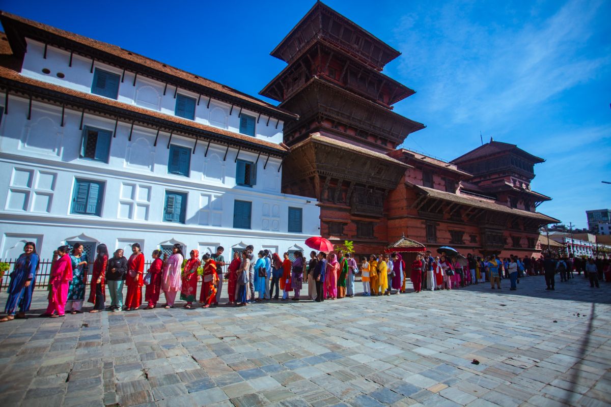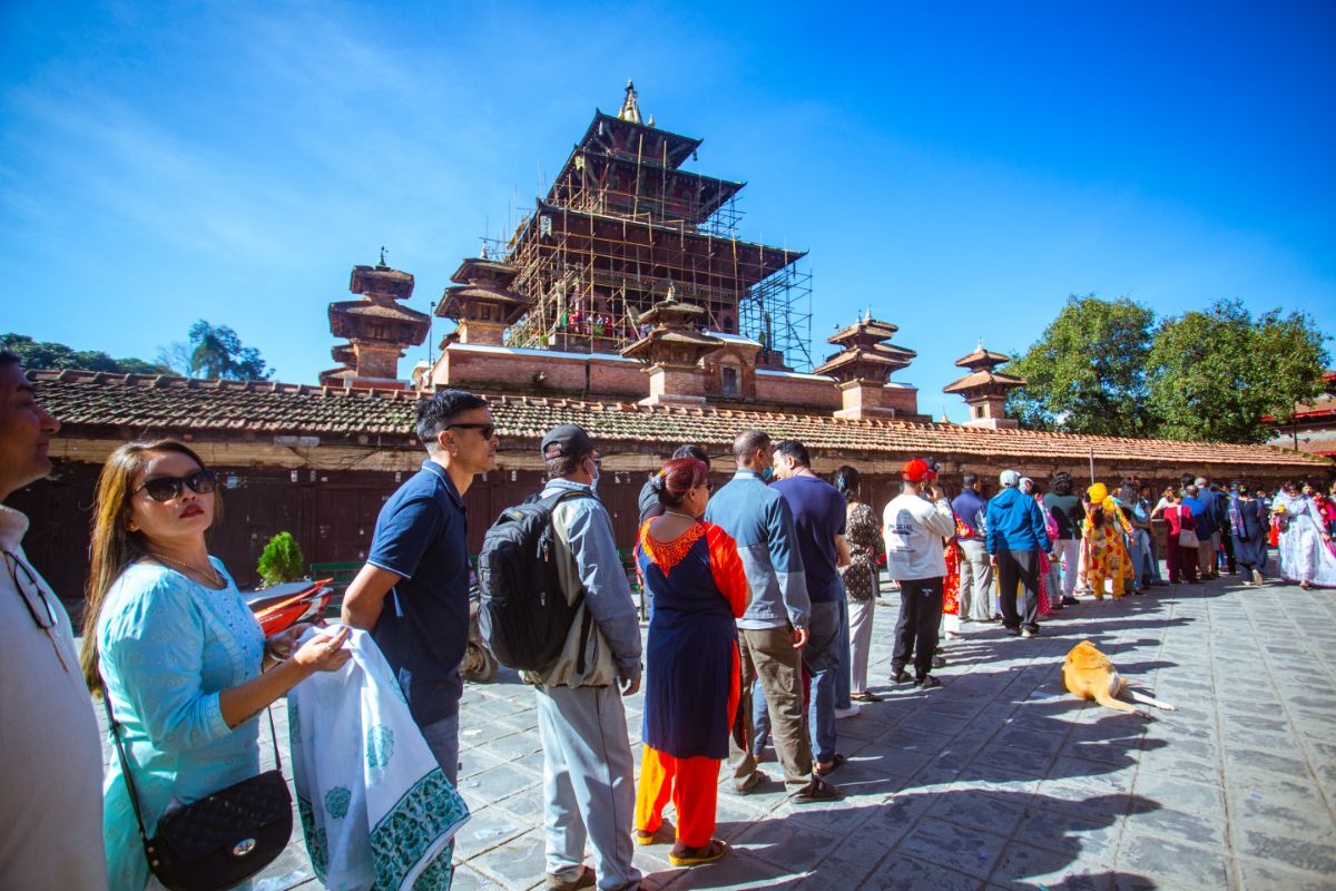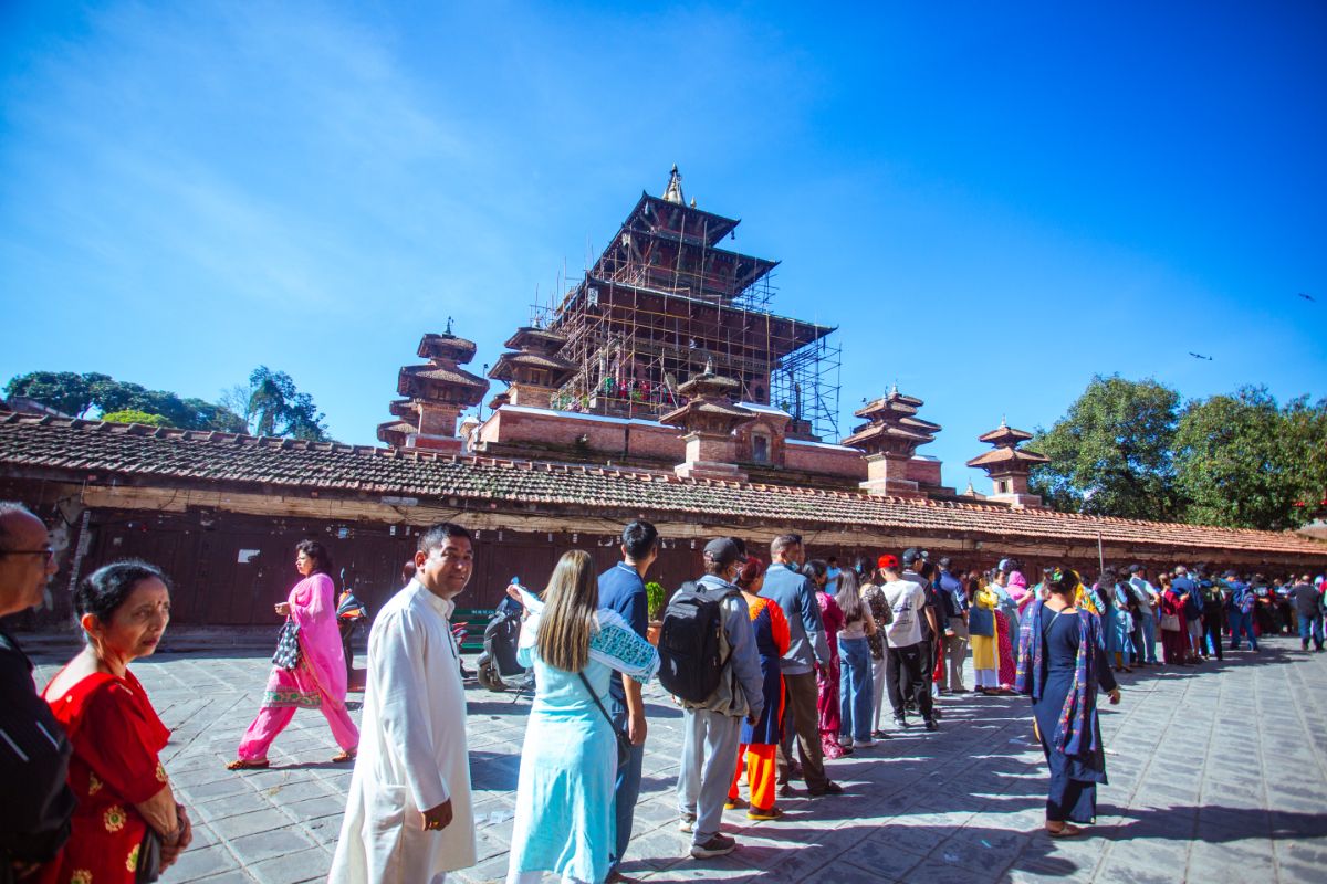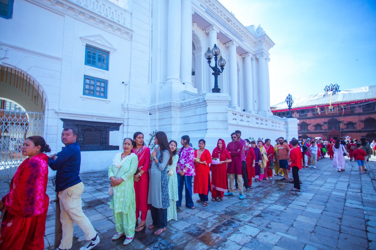 काठमाडौं, असोज १५ गते । काठमाडौंको हनुमानढोका दरवार क्षेत्रस्थित तलेजु मन्दिरमा पूजा गर्ने भक्तजनको घुइँचो लागेको छ । दसैं सुरु भएपछि आज महानवमीको दिन तलेजु मन्दिरमा भक्तजनहरुले पूजापाठ गरेका छन् । विहानदेखि मन्दिरमा भक्तजनहरुको घुइँचो लागेको छ । यस मन्दिरमा पूजापाठ गर्नाले मागेको आशीर्वाद प्राप्त हुने भक्तजनको विश्वास रहेको छ ।