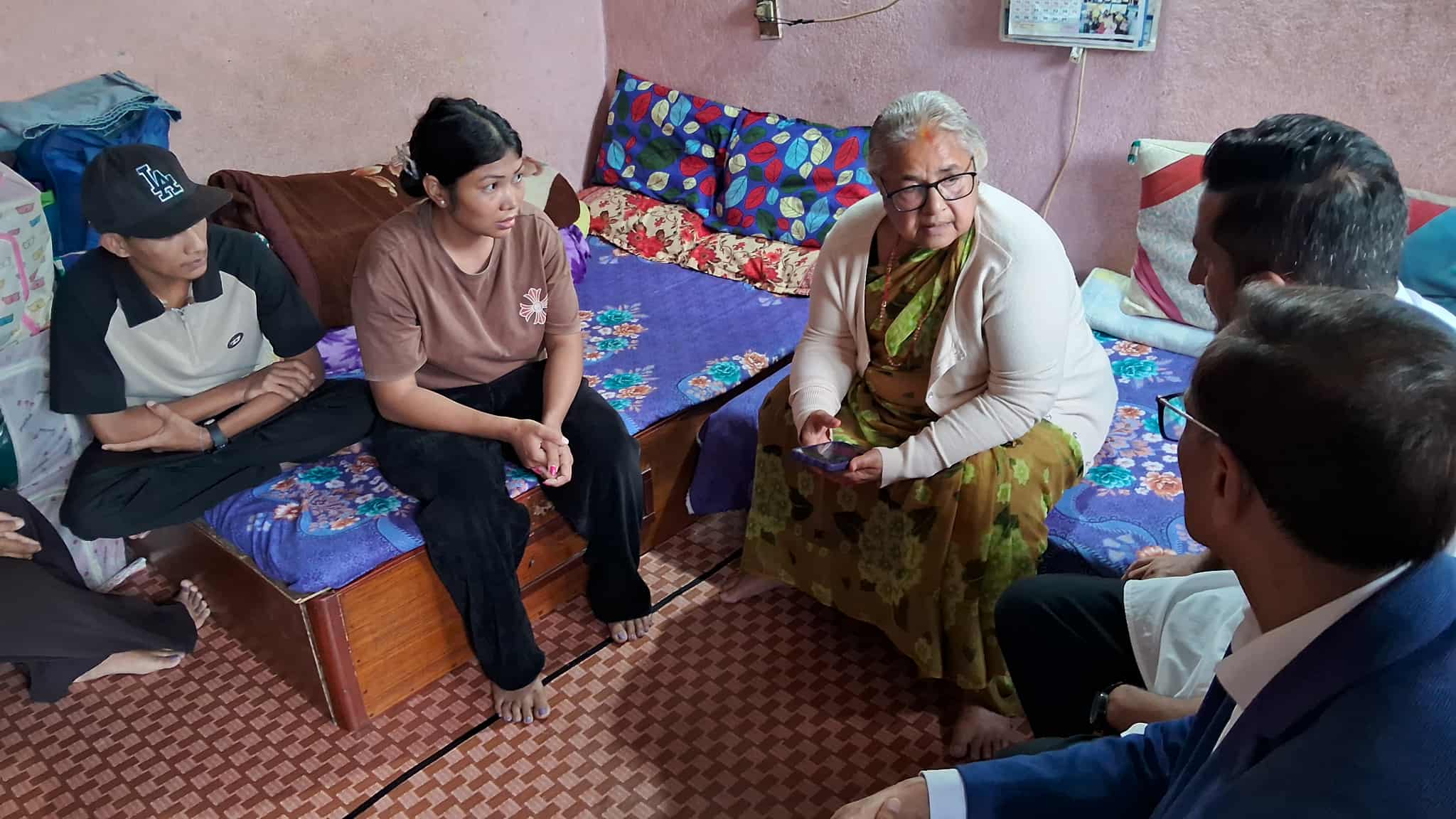 काठमाडौं, असोज १६ गते । प्रधानमन्त्री सुशीला कार्कीले जेन्जी आन्दोलनका क्रममा ज्यान गुमाएका परिवारका सदस्यहरुसँग आज घरमै पुगेर भेटघाट तथा सान्त्वना दिनुभएको छ । सहिद परिवारका सदस्यको घरमै गएर उहाँहरुसँग भेट गर्नुभएको हो ।