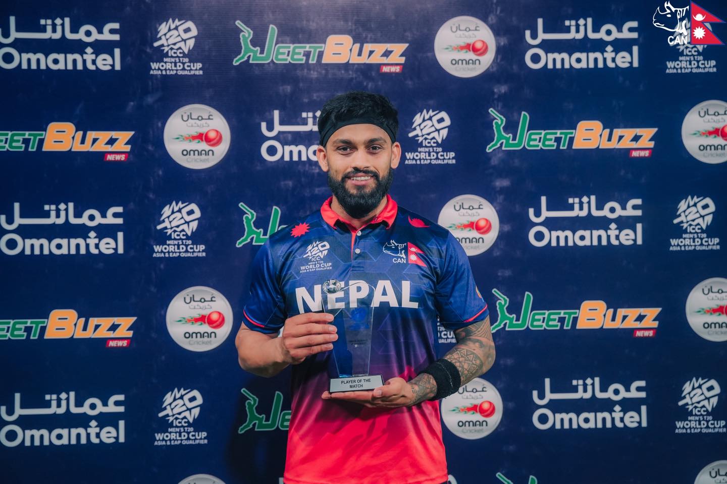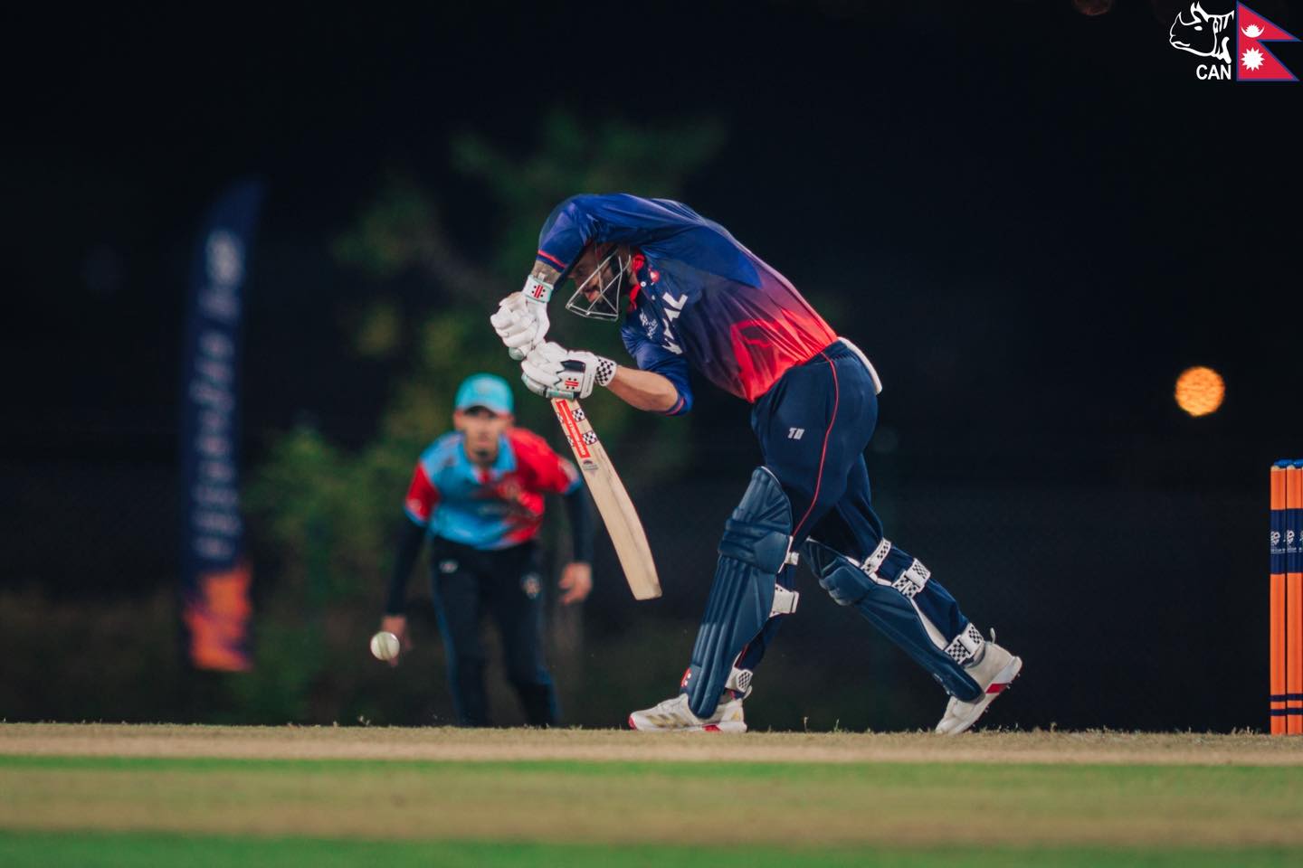 यस्तै अलराउन्डर दीपेन्द्रसिंह ऐरिले १९ बलमा एक छक्कासहित २० र कप्तान रोहितकुमार पौडेलले १६ रन बनाउनुभयो । नेपालका अन्य खेलाडीले दोहोरो अङ्कमा रन बनाउन सकेनन् ।