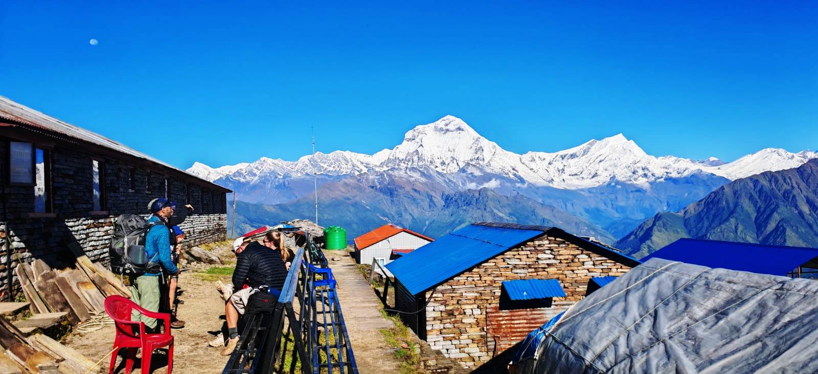 म्याग्दी, असोज २४ गते । केही दिनयता खोप्रालेकमा आकाश खुलेको छ । वरपर टलक्क टल्किएका हिमालहरुको सुन्दर दृश्य देखिएको छ । म्याग्दीको अन्नपूर्ण गाउँपालिका ५ स्थित पर्यटकीय स्थल खोप्रालेकबाट शुक्रबार बिहान देखिएको हिमशृङ्खलाको सुन्दर दृश्य हो ।