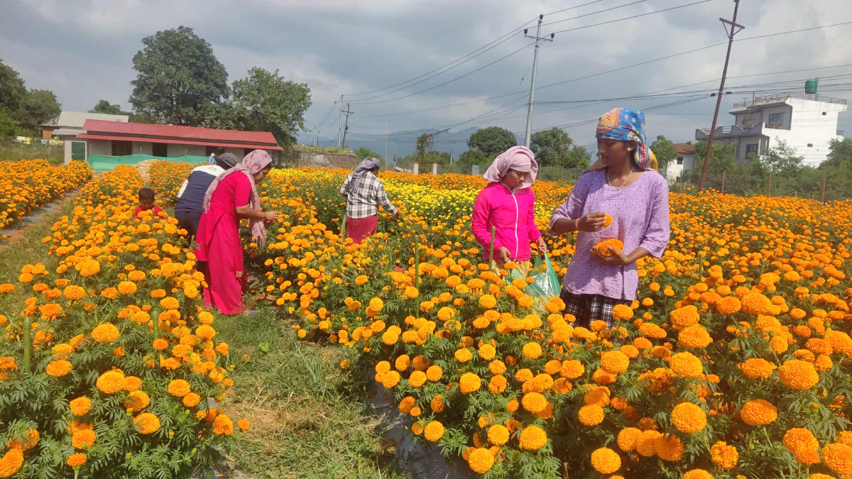 घोराही १४ झिंगौरा र १६ तेरौटेमा गरेर तीन बिगाह जग्गामा फूल खेती गर्नुभएको छ । घोराही–३ झिंङ्नीमा पुष्प व्यवसाय गर्नुभएका दिपेश ढकालसमेत तिहारका लागि आवश्यक पर्ने फूल टिप्ने माला बुन्नेदेखि तयार भएका माला अडर अनुसार पठाउने काममा व्यस्त हुनुहुन्छ ।