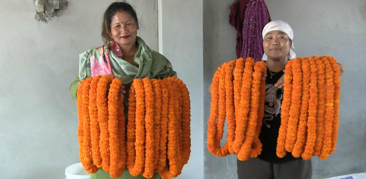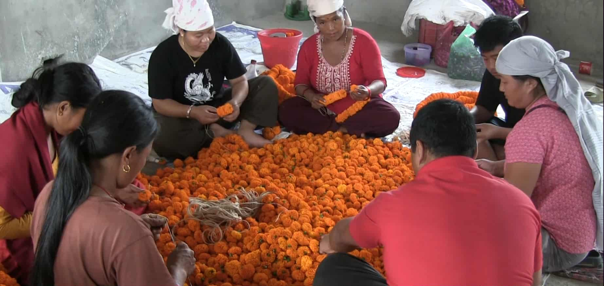 घोराही, कात्तिक ३ गते । तिहार सुरु भएसँगै दाङमा पुष्प व्यवसाय गरेका किसानलाई फूल टिप्नदेखि माला उन्नका लागि भ्याइनभ्याइ छ । तिहारमा भाइटीकामा लगाउने मालासँगै अन्य विभिन्न कार्यमा प्रयोग हुने फूलको माग बढेपछि फूल टेप्नेदेखि माला बुन्ने काम भइरहेको छ ।