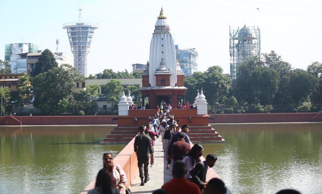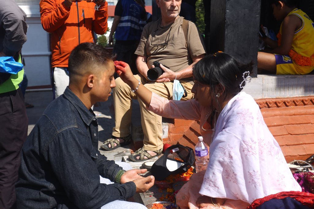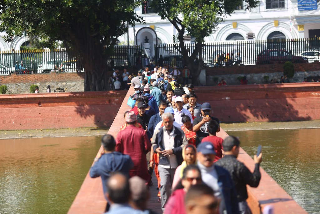 काठमाडौँ, कात्तिक ६ गते । काठमाडौँको रानीपोखरीमा रहेको बालगोपालेश्वर मन्दिरमा भाइटीका लगाउनेको भिड रहेको छ । यमपञ्चकको अन्तिम दिन अर्थात् तिहारको मूख्य दिन आज दिदीबहिनी नहुनेका लागि एक दिन सो मन्दिर टीकाका लागि खुला गर्ने गरिएको छ ।