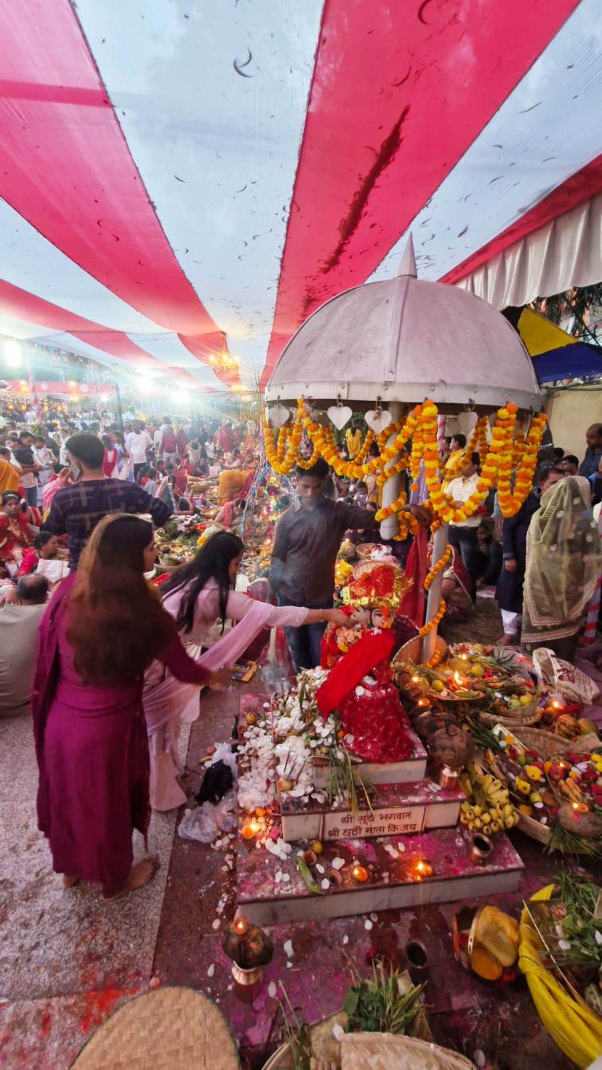 वीरगञ्जका घडिअर्वा, रानीघाट, नगवा, मूर्लीलगायतका सिँगारिएका घाटमा पुगेर अस्ताउँदो सूर्यलाई अर्घ्य दिइएको हो।