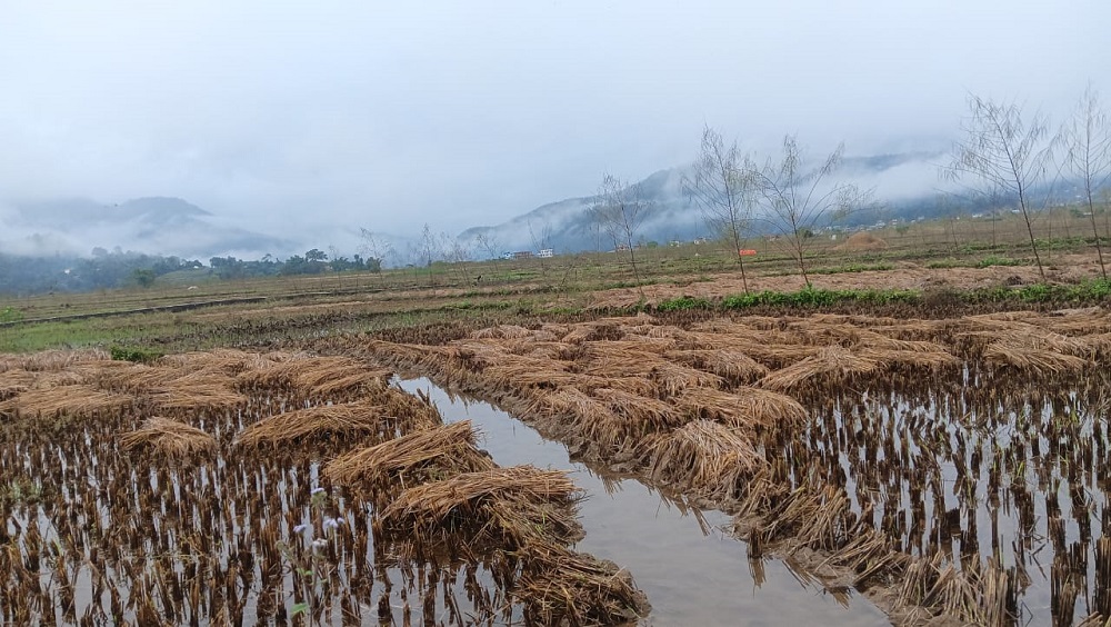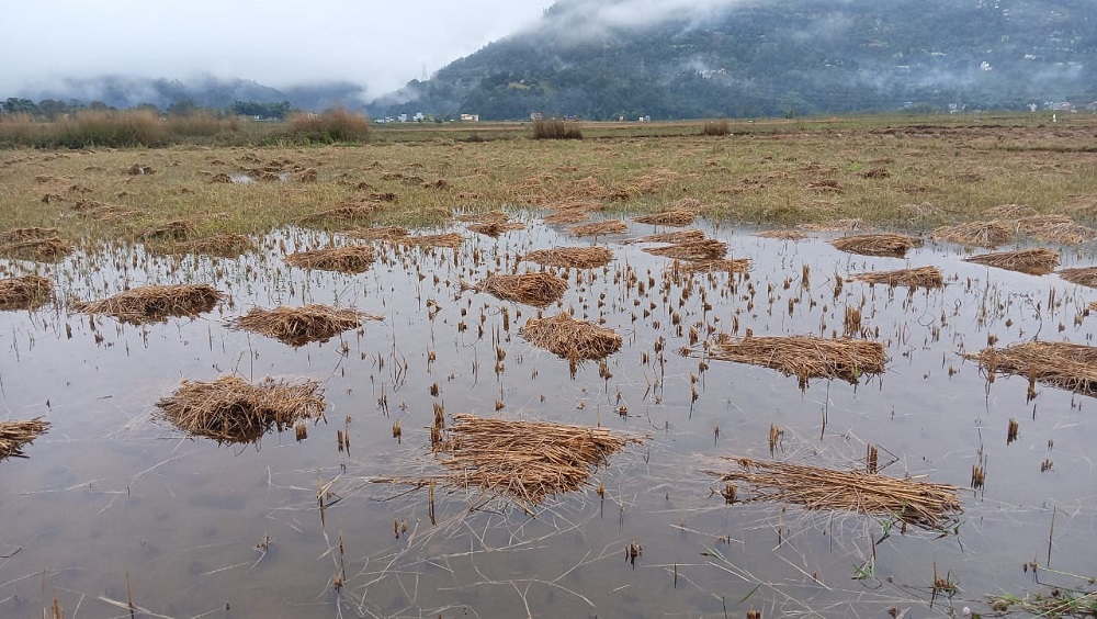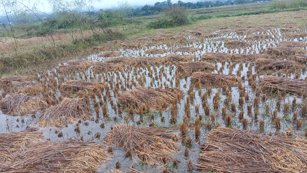बिहीबार बिहानैदेखि लगातार पानी परेपछि पाल्पाको रामपुर, माडी, कचल, अर्गली, पूर्वखोला, गेझा, झडेवा, तिनाउ, सर्देवा, गल्धाफाँटमा किसानले काटेर राखेका धान भिजेको छ । धान पाकेर काटेका धान खेतमै उम्रिने अवस्था बनेपछि स्याहार्न नपाउने हो कि भनेर चिन्ता थपिएको बगनासकाली–१, का किसान यज्ञ कुमालले बताउनुुभयो ।