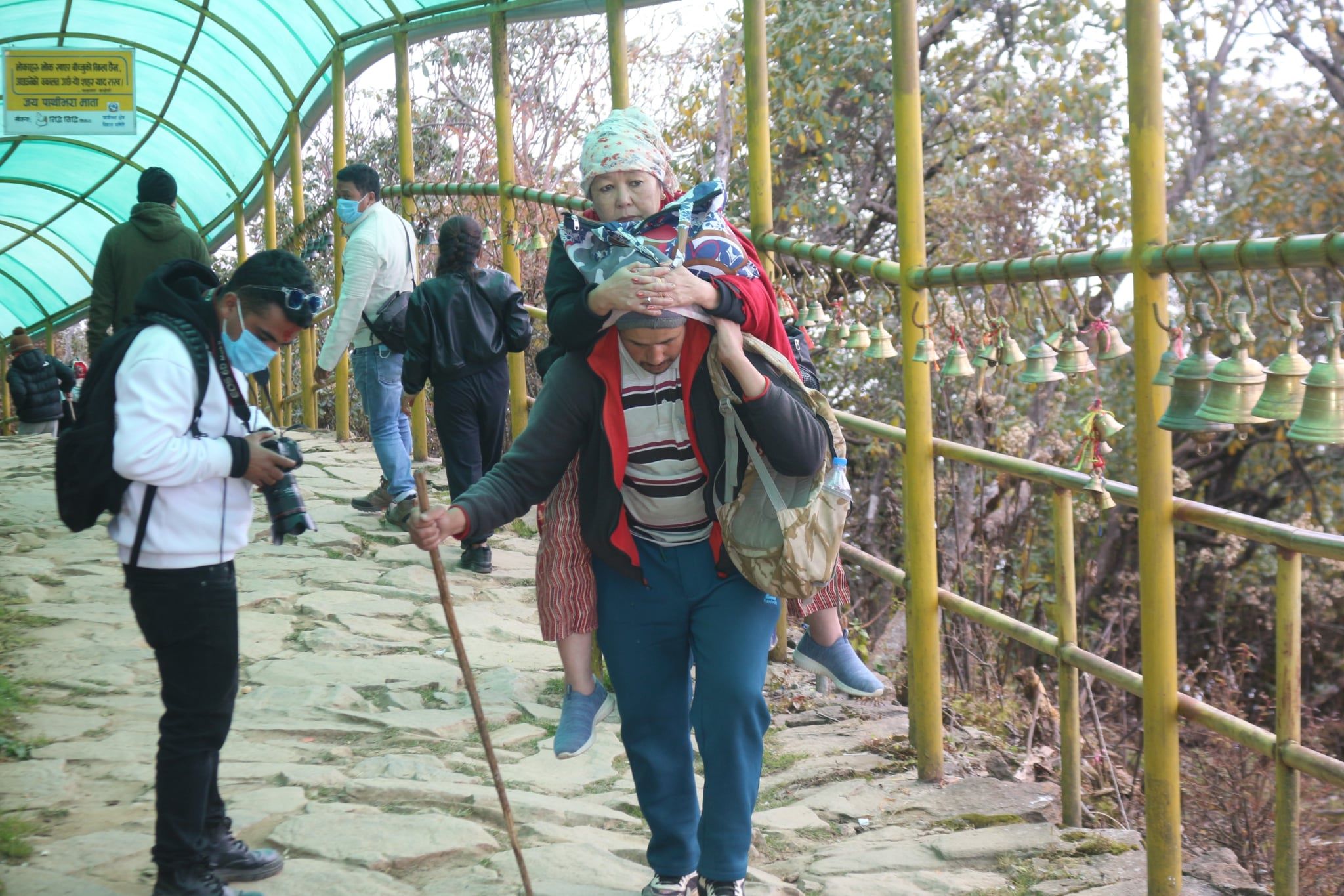 फुङलिङ, कात्तिक १५ गते । ताप्लेजुङमा रहेको प्रसिद्ध तीर्थस्थल पाथीभरा मन्दिरमा हिड्‌न नसक्ने दर्शनार्थीहरूलाई बोकेर पाथीभरा मन्दिरको दर्शन गराइने व्यवस्था रहेको छ । हिड्‌न नसक्ने दर्शनार्थीलाई भरियाहरूले मन्दिरसम्म बोकेर पुर्याउने गरेका छन् ।